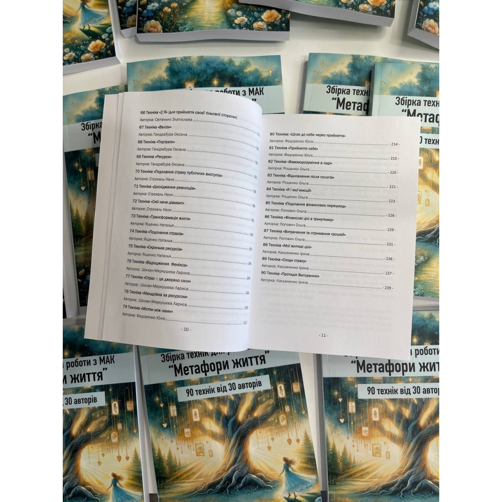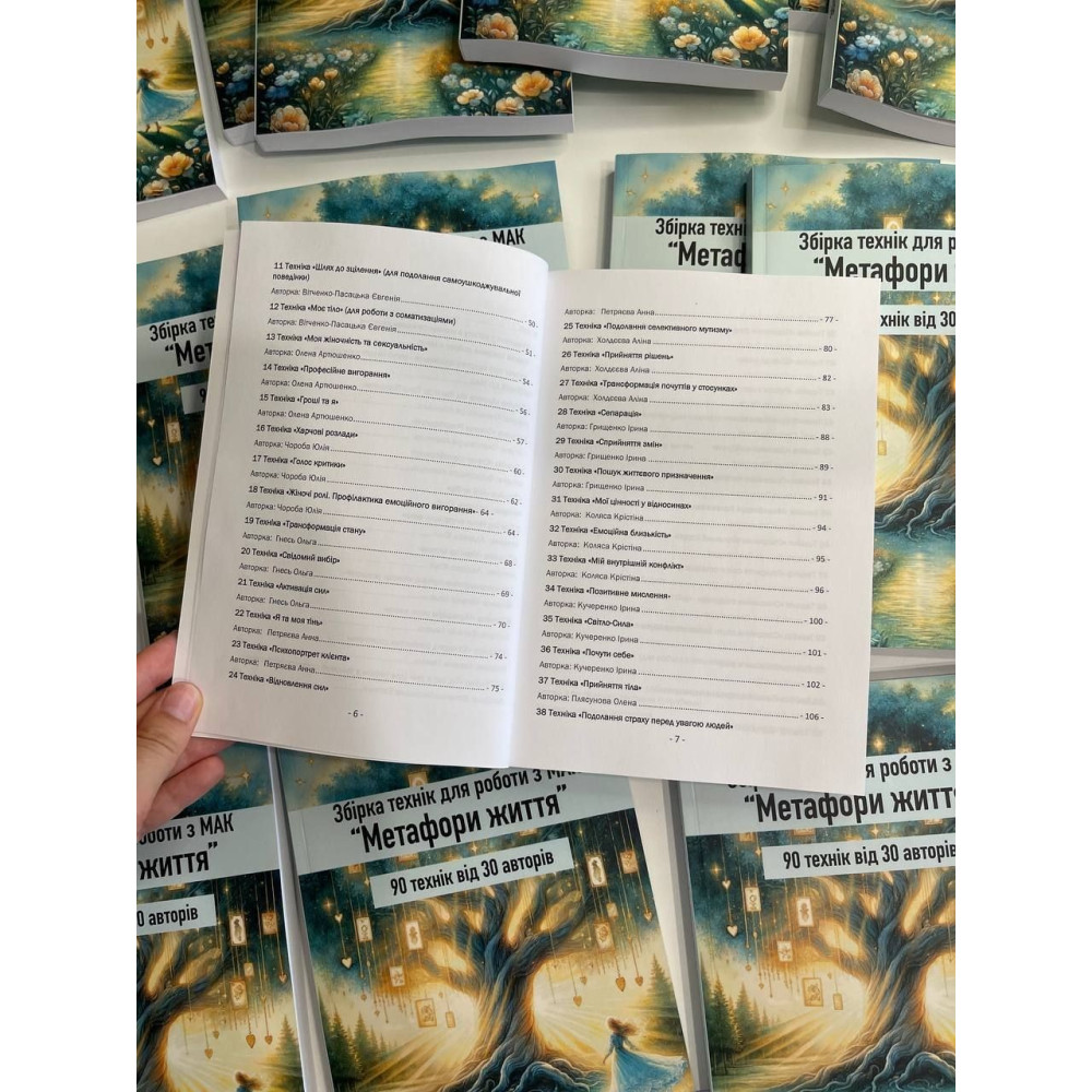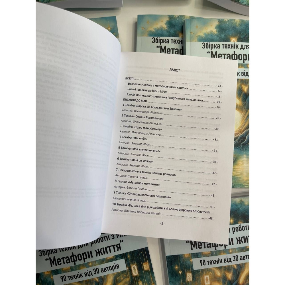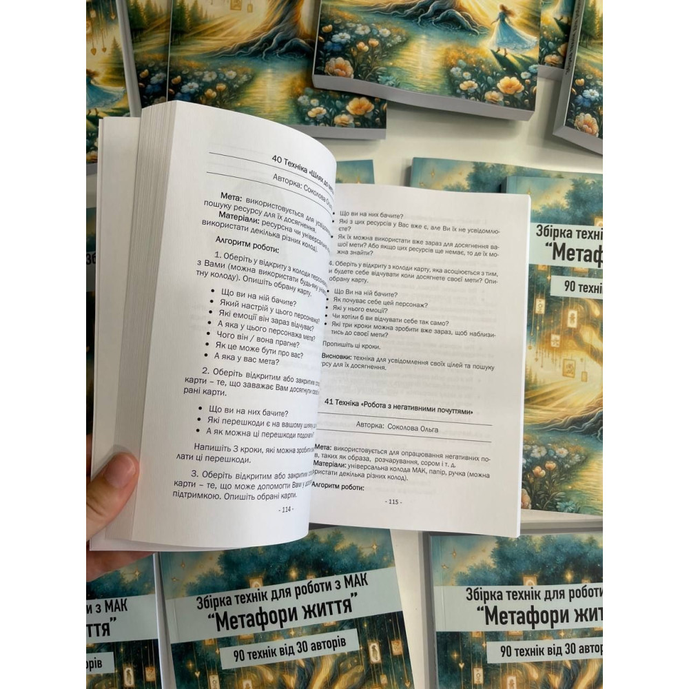 «Метафори життя» — це методичний посібник, що включає 90 технік роботи з метафоричними асоціативними картками, розроблених командою спеціалістів. Цей посібник стане незамінним інструментом для коучів, психологів, HR-спецалістів, педагогів та всіх, хто працює в сфері допомагаючих професій.