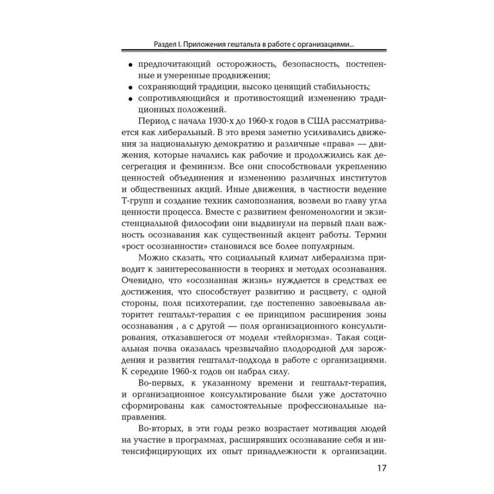 Висвітлено теоретико-методологічні засади додатків Гештальта до роботи з організаціями, проведено аналіз опорів організаційним змінам та способам їх опрацювання, описано специфічні методи Гештальту для різних організаційних рівнів. Текст містить безліч прикладів із практики.