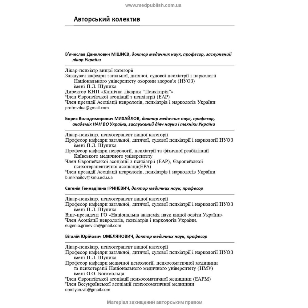 | Додаткові розділи | Клінічна психотерапія, Всеукраїнське спеціалізоване видавництво «Медицина» |