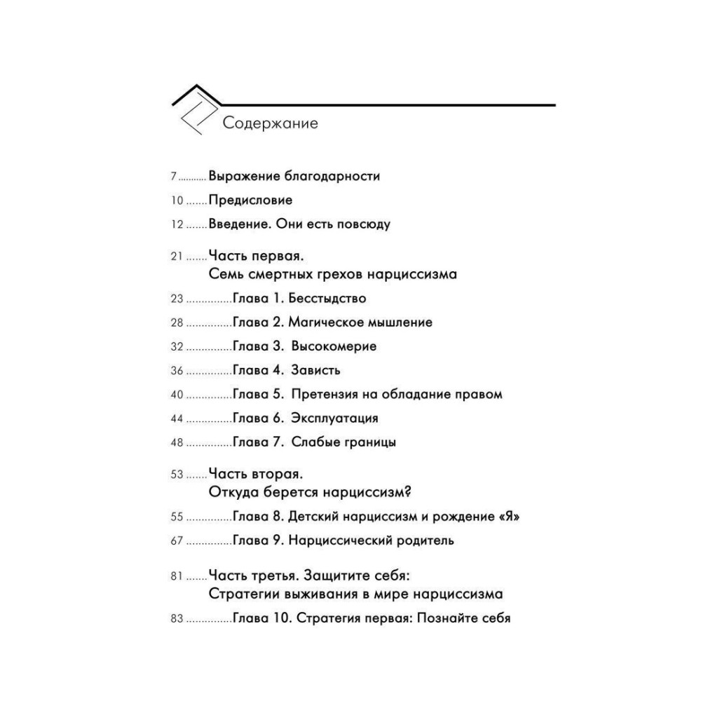 Авторка описує «сім смертних гріхів» нарцисизму, а також механізми їхнього формування, пов'язані з батьківським вихованням і навколишньою культурою.