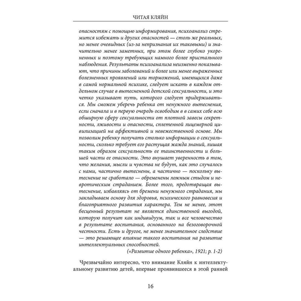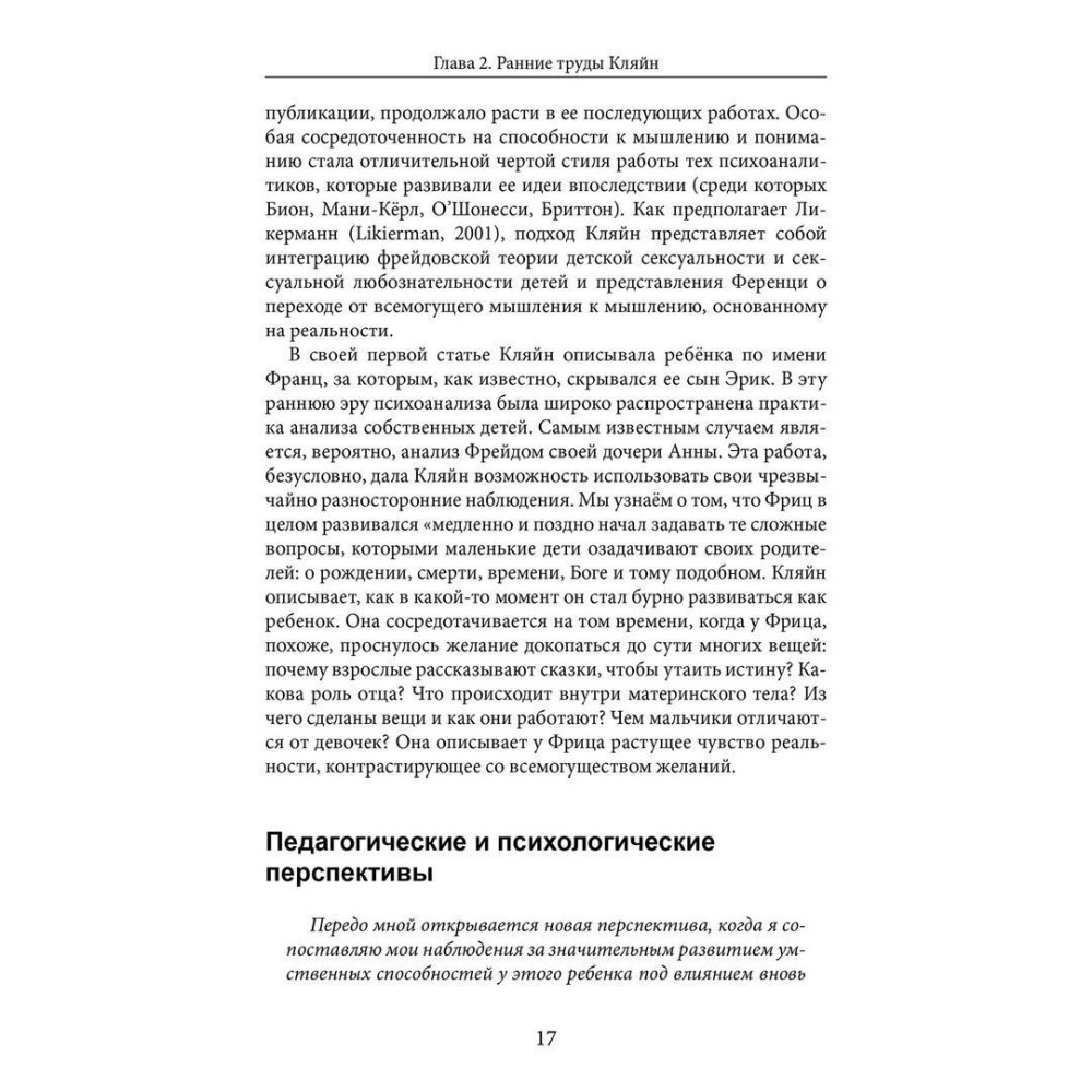 Ця книжка робить роботи Мелані Кляйн більш доступними, представляючи як суттєві витяги з її власних робіт, так і коментарі авторів, що розкривають їхнє значення.