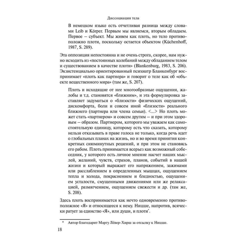 Матіас Хірш, німецький психоаналітик, який більшу частину своїх праць присвятив темі взаємодії тіла і психіки, пропонує у книзі «Это мое тело... и я могу делать с ним что хочу»: Психоаналитический взгляд на диссоциацию и инсценировки тела» власний погляд на соціальні і патологічні маніпуляції з тілом як прояв пошуку людиною своєї ідентичності. Концепція вченого та запропоновані ним методики роботи з пацієнтами з психосоматичними розладами стануть у нагоді психологам і психотерапевтам.