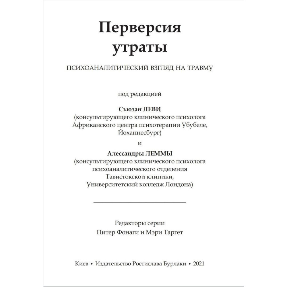 «Перверсия утраты. Психоаналитический взгляд на травму» під редакцією Сьюзан Леві та Алессандри Лемми є збіркою статей, у яких професійними клініцистами досліджується вплив травм на психічне функціонування. Зокрема, вони зосереджуються на розумінні травми як перверсії втрати з акцентом на тому, як руйнація здатності сумувати трансформує природу наших уподобань, символічного функціонування та наших внутрішніх ідентифікацій.