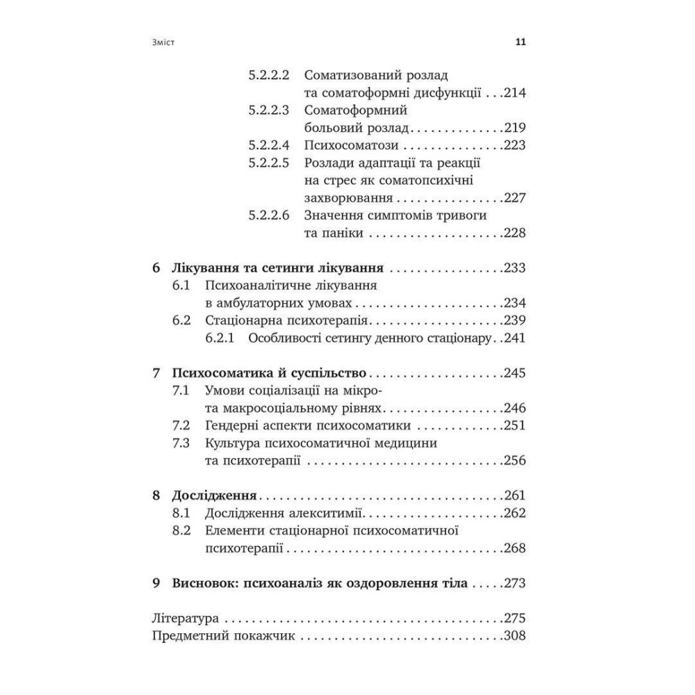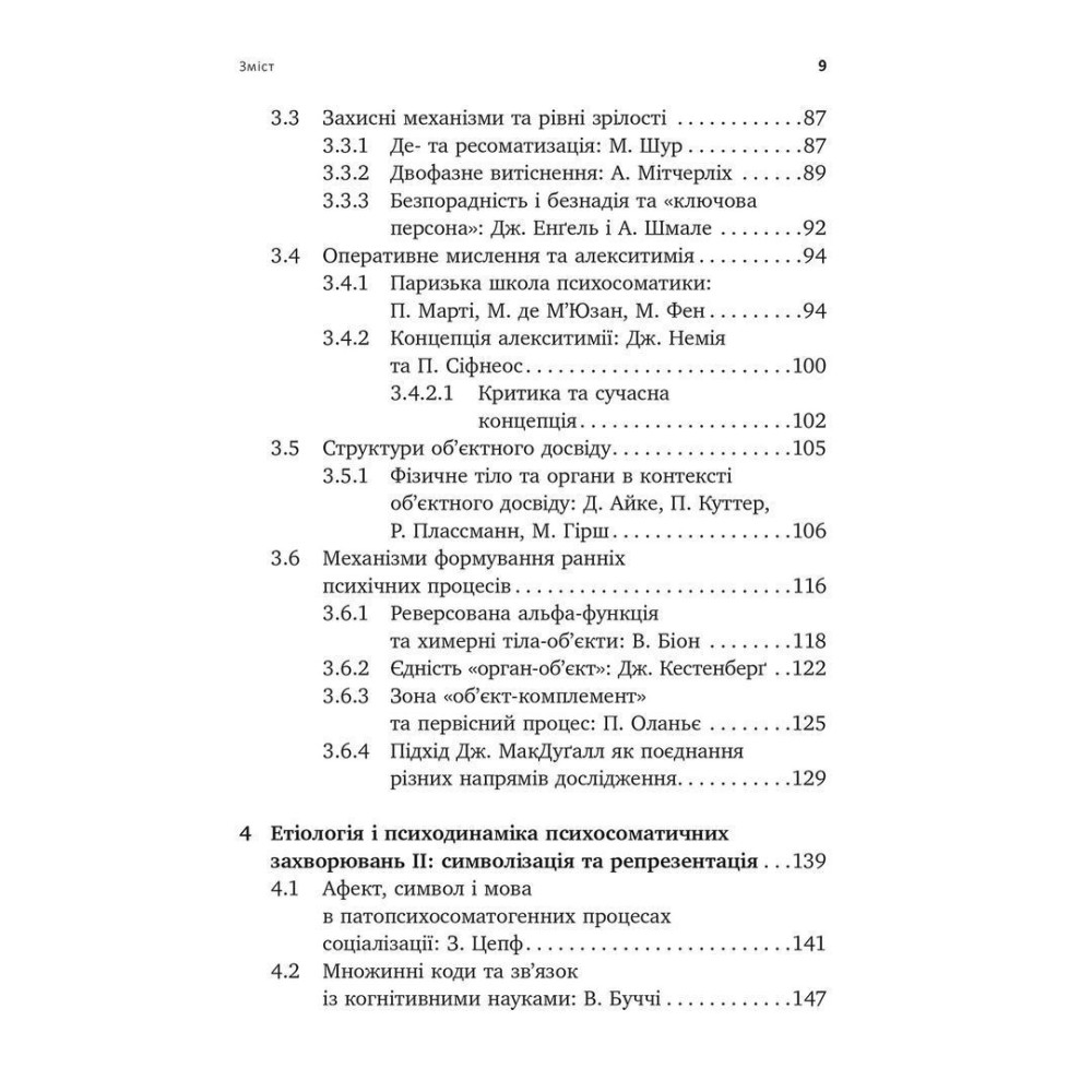 Крім базових теоретичних концептів, автор звертається до практичних питань психоаналітичної психосоматики, зокрема її ефективності й принципів лікування в умовах стаціонарного сетингу.