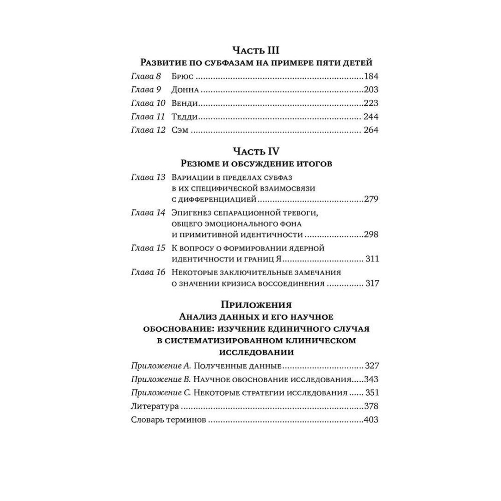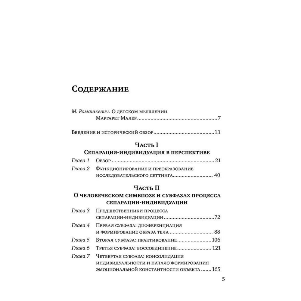 У центрі уваги авторів входять процеси нормальних індивідуалів, які розглядаються як два взаємодоповнюючі лінії розвитку. Підфази розділених індивідуалів у процесі виконання вікових завдань, які стикаються з дитиною та його матір'ю, коли вони переходять дитину до його власної особистості, детально описані.