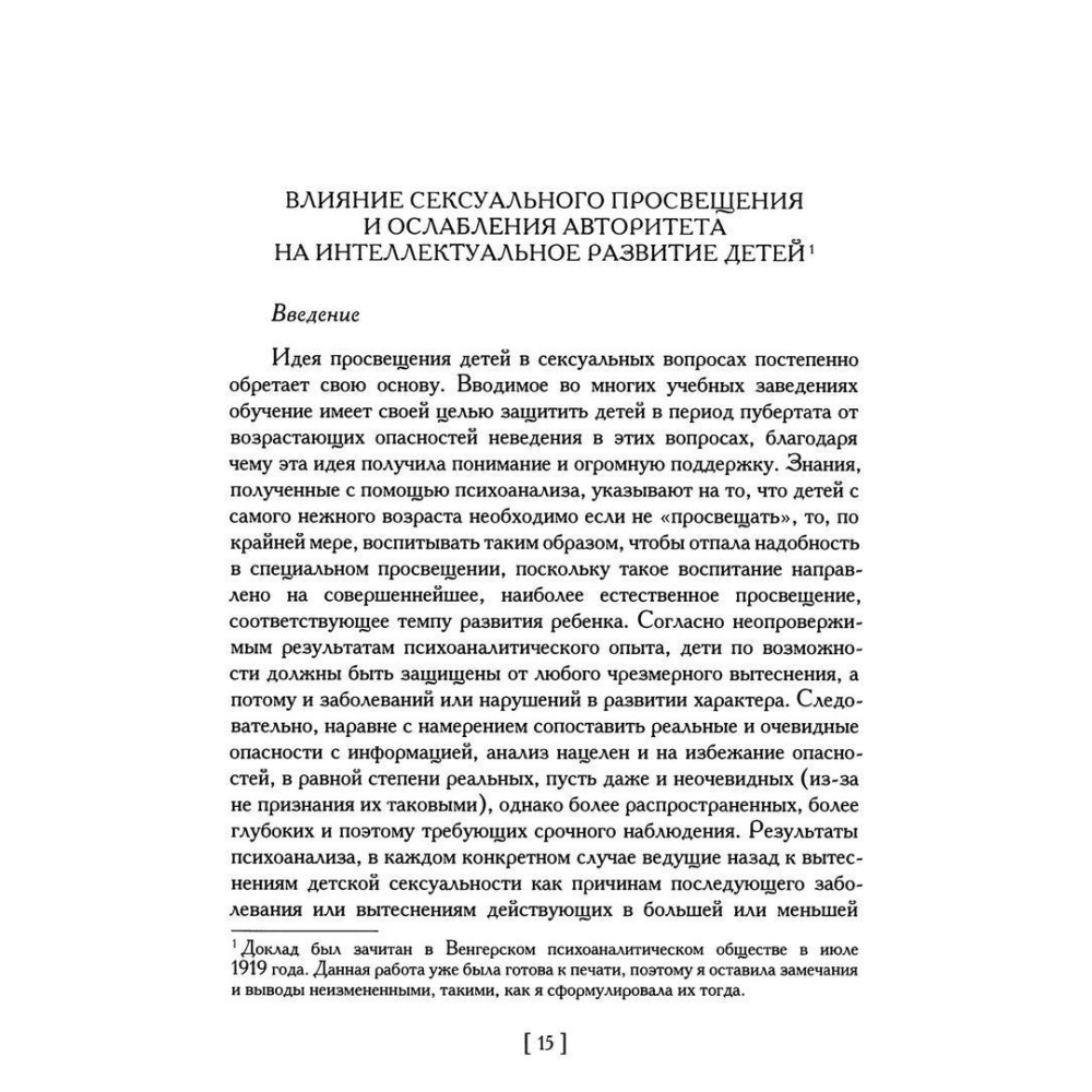 Мелані Кляйн у своїй праці «Психоаналитические труды. Развитие одного ребенка и другие работы 1920-1928 гг. Том 1» описує розвиток дитини з психоаналітичної точки зору, а також зачіпає інші теми: від складнощів у пубертаті до Едіпового комплексу.