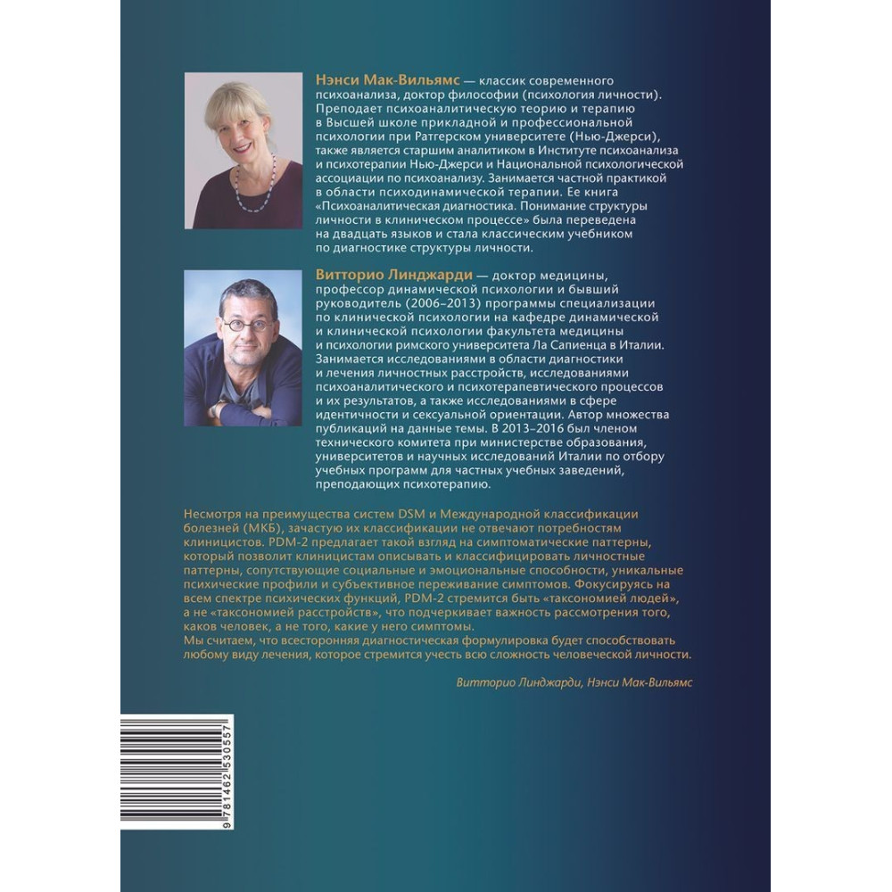 Діагностичний посібник «Руководство по психодинамической диагностике PDM-2 (в двох томах)», який випущено під редакцією Вітторіо Лінджарді та Ненсі Мак-Вільямс, ґрунтується на психодинамічних клінічних моделях і теоріях та орієнтований на складання клінічного формулювання випадку й планування лікування, а також пропонує практикуючим фахівцям емпірично обґрунтовану й клінічно підтверджену альтернативу таким картам особистості, як «Діагностичний і статистичний посібник із психічних розладів» (DSM) і «Міжнародна класифікація хвороб» (МКХ).