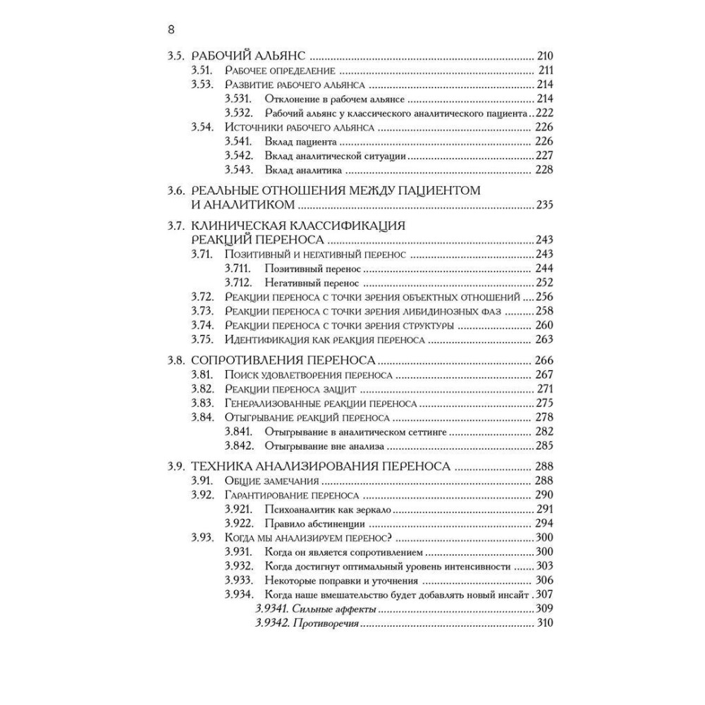 У книзі Грінсон детально розглядає техніку аналізу перенесення й опору, проблеми встановлення робочого альянсу, позицію аналітика та вимоги, які висуває психоаналітична ситуація.