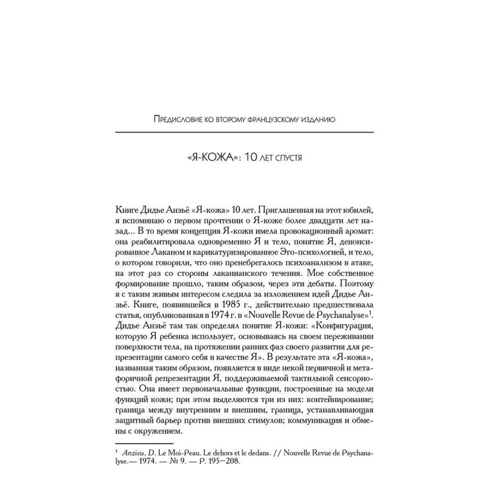 До цього видання включено передмову Евелін Сешо до другого французького видання, що вийшло 1995 року, де вона розглядає теорію, яку розгортає Анзьє, в контексті пошуків психоаналітиків другої половини XX ст. Усі наведені в книзі цитати з робіт 3. Фройда звірені за німецьким виданням зібрання його праць.