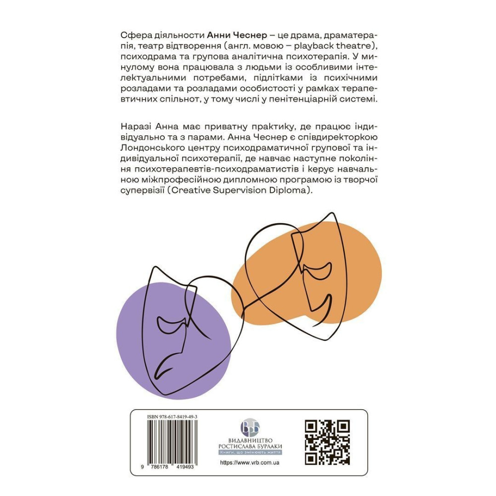 Анна Чеснер — співдиректорка Лондонського центру психодраматичної групової та індивідуальної психотерапії. Вона навчає майбутніх психотерапевтів-психодраматистів і керує міжпрофесійною дипломною програмою з творчої супервізії (Creative Supervision Diploma).