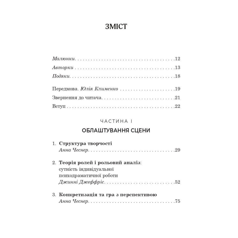 У книзі докладно описано ключові техніки психодраматичної психотерапії: