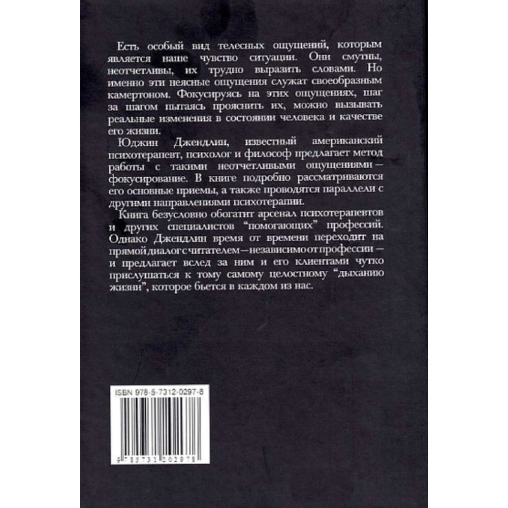 Книжка безумовно збагатить арсенал психотерапевтів та інших спеціалістів «допомагаючих» професій. Однак Джендлін час від часу переходить на прямий діалог із читачем — незалежно від професії — і пропонує слідом за ним і його клієнтами чуйно прислухатися до того самого цілісного «дихання життя», яке б'ється в кожному з нас.