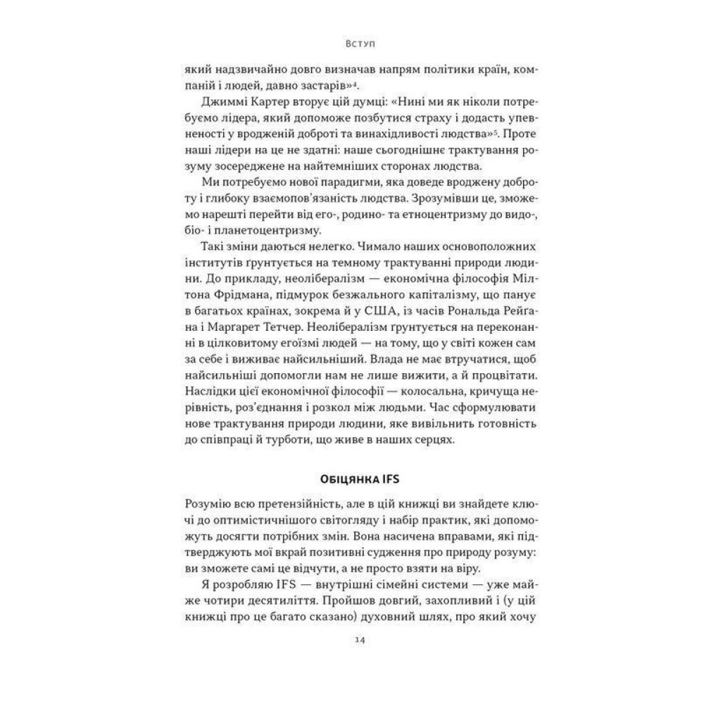 IFS — це модель, яка змінює парадигму, оскільки вона дає нам потужний підхід до зцілення самих себе, нашої культури та нашої планети. Як навчає доктор Шварц: «Наші частини іноді можуть бути руйнівними або шкідливими, але як тільки вони звільнені від навантаження, вони повертаються до своєї основної доброти. Коли ми навчимося любити всі свої частини, ми зможемо навчитися любити всіх людей — і це сприятиме зціленню світу».