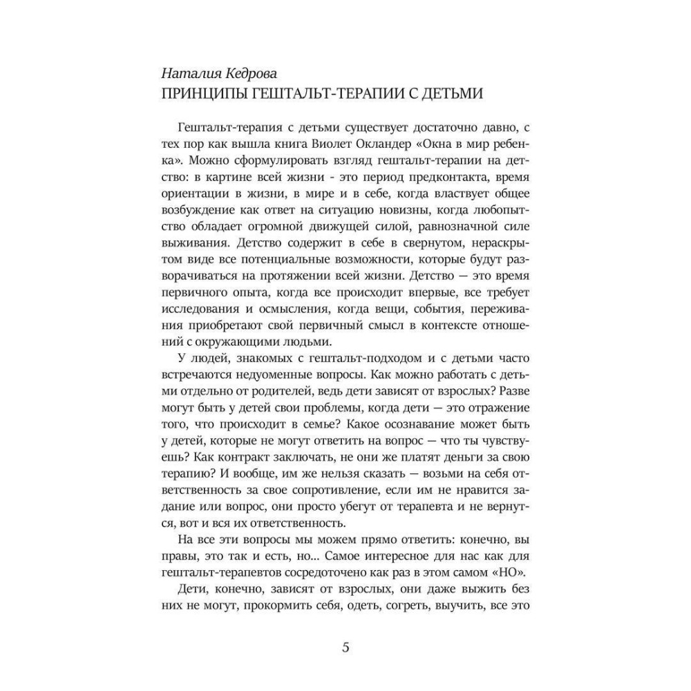 «Гештальт-терапия с детьми. Выпуск 2. Наши любимые методики», що укладена Наталією Кедровою, містить усю необхідну інформацію по роботі з дітьми у гештальттерапії.