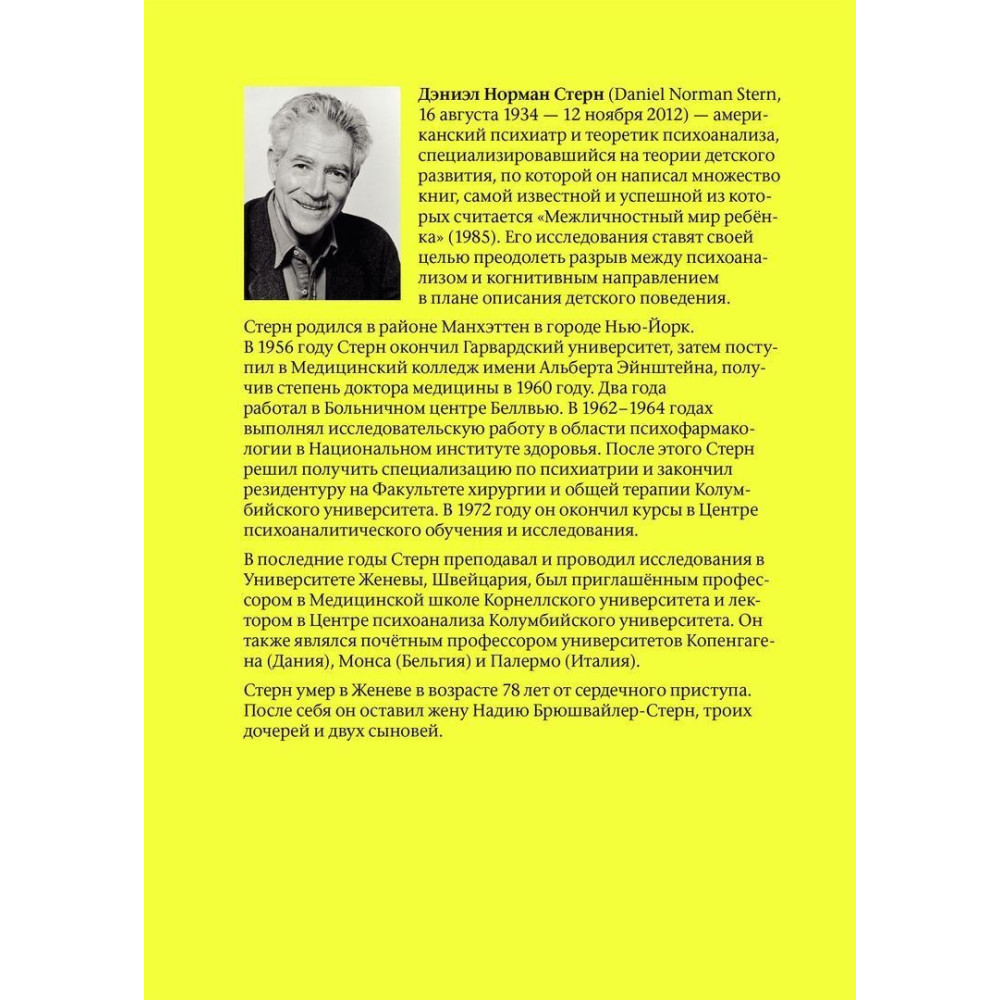 Книга видатного клініциста і дослідника Деніела Н. Стерна «Межличностный мир ребенка. Взгляд с точки зрения психоанализа и психологии развития» досліджує внутрішній світ немовляти.