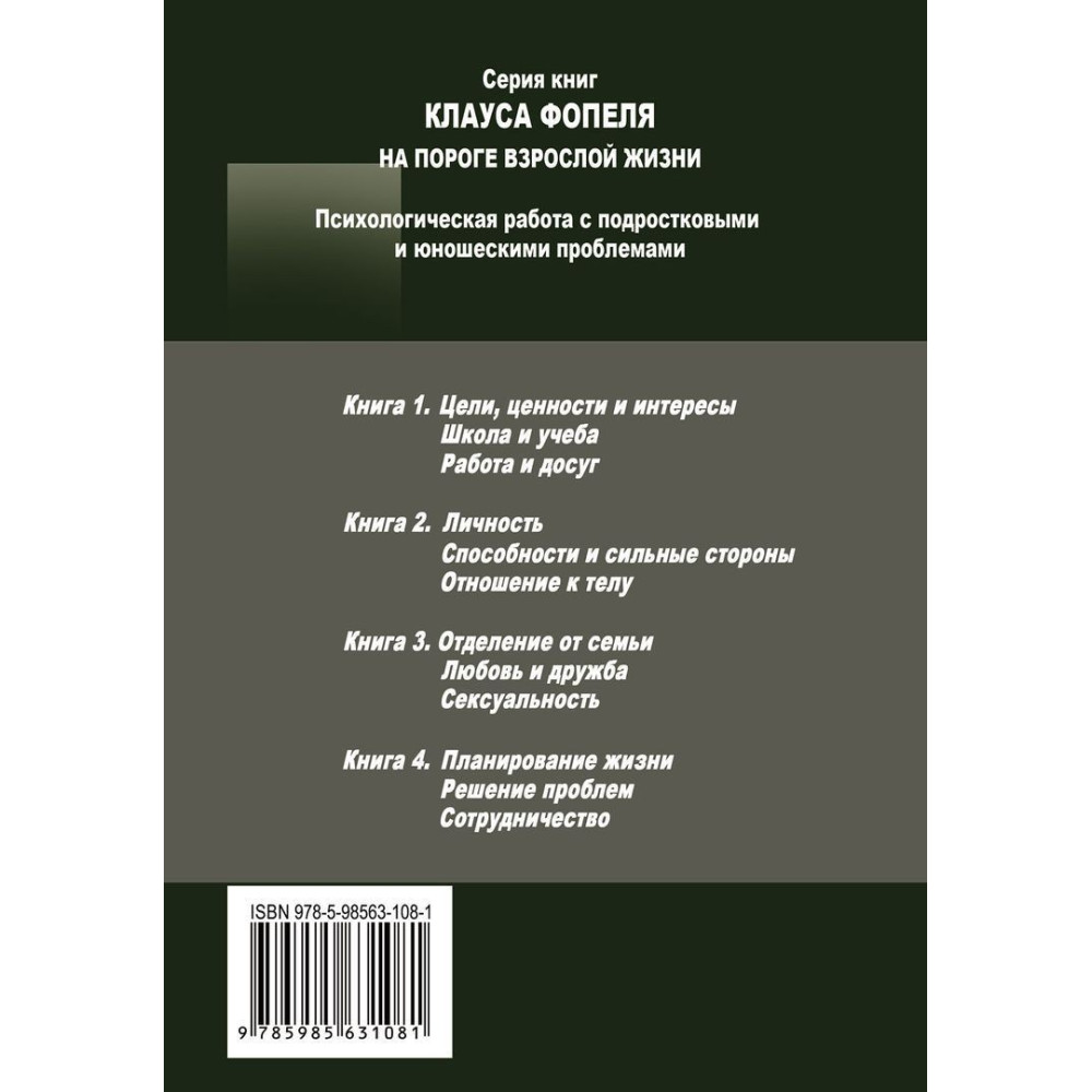 «На пороге взрослой жизни: Психологическая работа с подростковыми и юношескими проблемами. Цели и ценности. Школа и учеба. Работа и досуг» за авторством Клауса Фопеля відкриває серію з чотирьох книжок, об'єднаних загальною назвою «На пороге взрослой жизни».