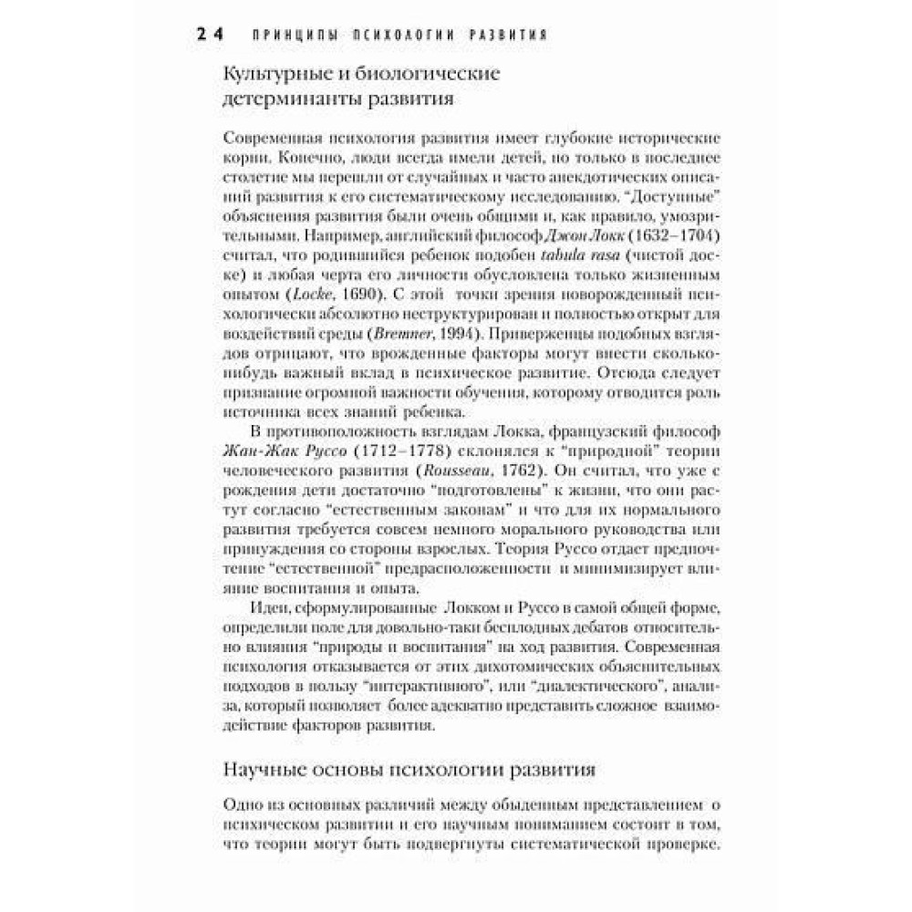 Зміст підручника охоплює широке коло наукових проблем: від пренатального розвитку до процесів старіння, від розвитку перцептивних функцій до впливу культури на особливості розвитку. Демонстрація перебігу руху наукової думки і становлення засад психології розвитку чудово доповнюється описом класичних експериментів, що підтверджують або спростовують ту чи іншу точку зору.