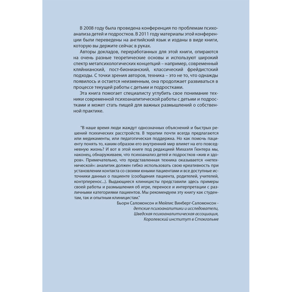 У цій книзі «Техника анализа детей и подростков», випуск якої відбувся під наглядом Міхаеля Гюнтера, різні автори-фахівці представляють основні концепції психоаналітичної техніки та обговорюють їхнє значення для аналізу дітей і підлітків.