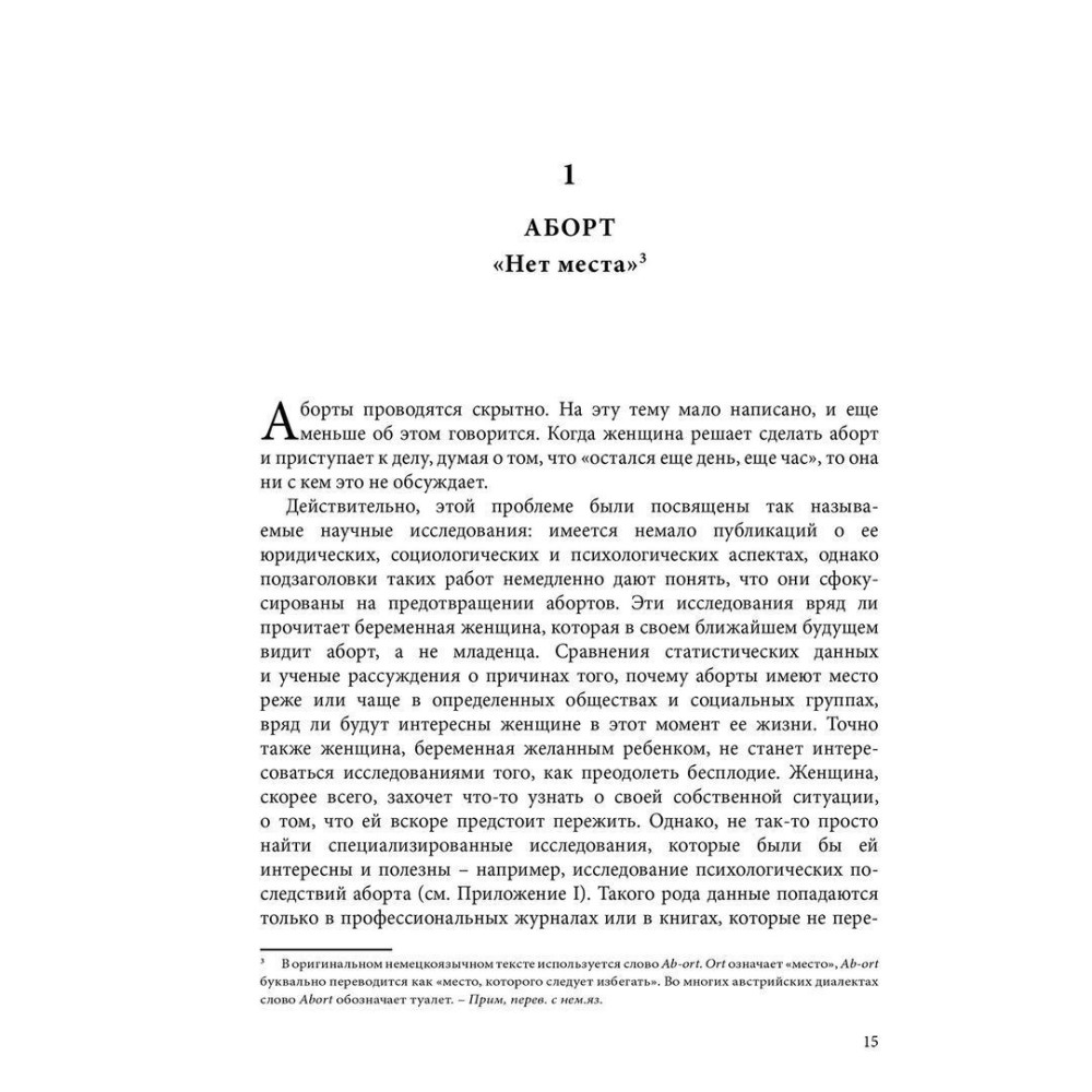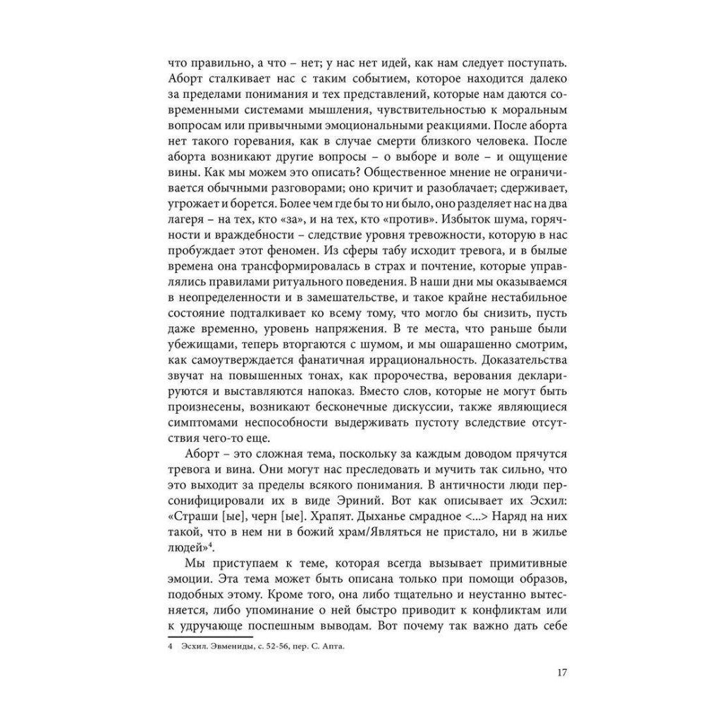 Визнаючи болючість теми, якої торкається авторка, вона вважає, що рішення зробити аборт може бути вмотивоване глибинними й архаїчними уявленнями жінки, тому його не варто розглядати з погляду «освіченого» раціоналізму.