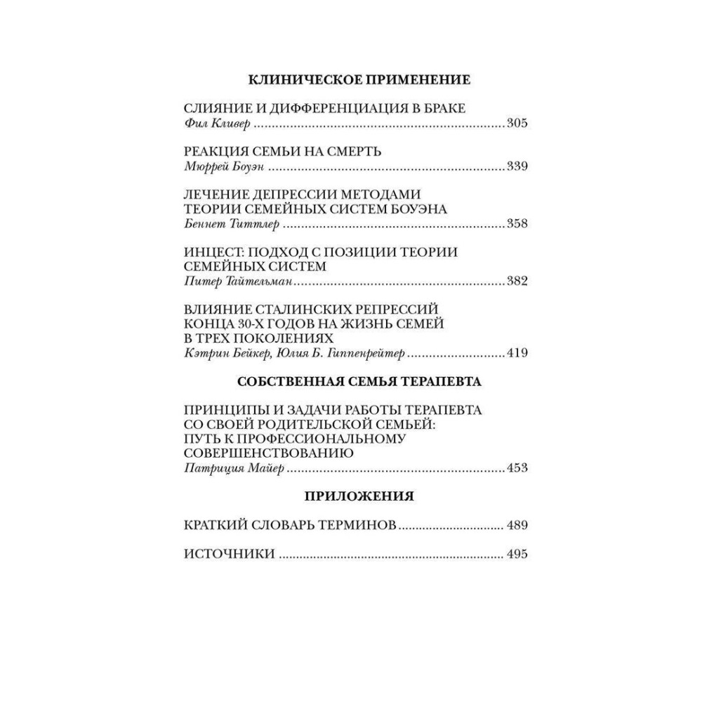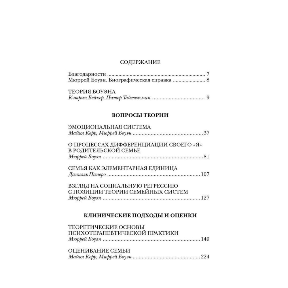 «Теория семейных систем Мюррея Боуэна» за авторством Анни Варги й Кетрін Бейкер включає статті відомого американського психіатра та психотерапевта Мюррея Боуена (1913-1990 рр.), а також його найближчих студентів та послідовників та дає уявлення про теорію сімейних систем, створених ним. Окрім загальних теоретичних аспектів теорії сімейних систем, книга охоплює такі теми, як подружній конфлікт, дитяча психопатологія, емоційні прогалини та інші особливі питання (інцест, смерть значного члена сім'ї та інше).