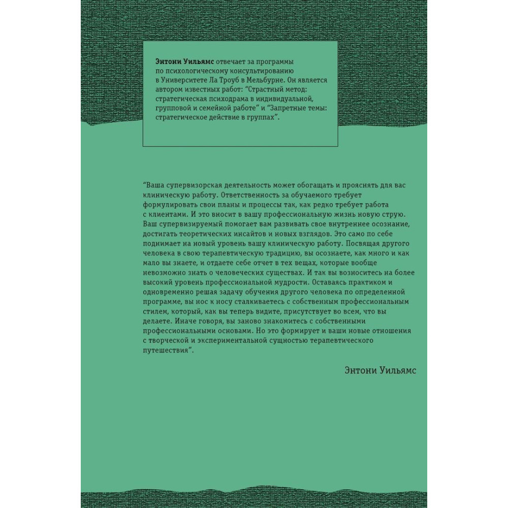 Тим більш корисною й цікавою буде книжка «Вы — супервизор... Шестифокусная модель, роли и техники в супервизии» за авторством Ентоні Вільямса, в якій описано і шестифокусну модель процесу супервізії, і контракт, і взаємні очікування супервізора та супервізуємого, і техніки, і ролі, в яких виступає супервізор, і «пастки», що на нього чатують. І багато прикладів конкретної роботи — як індивідуальної, так і групової.