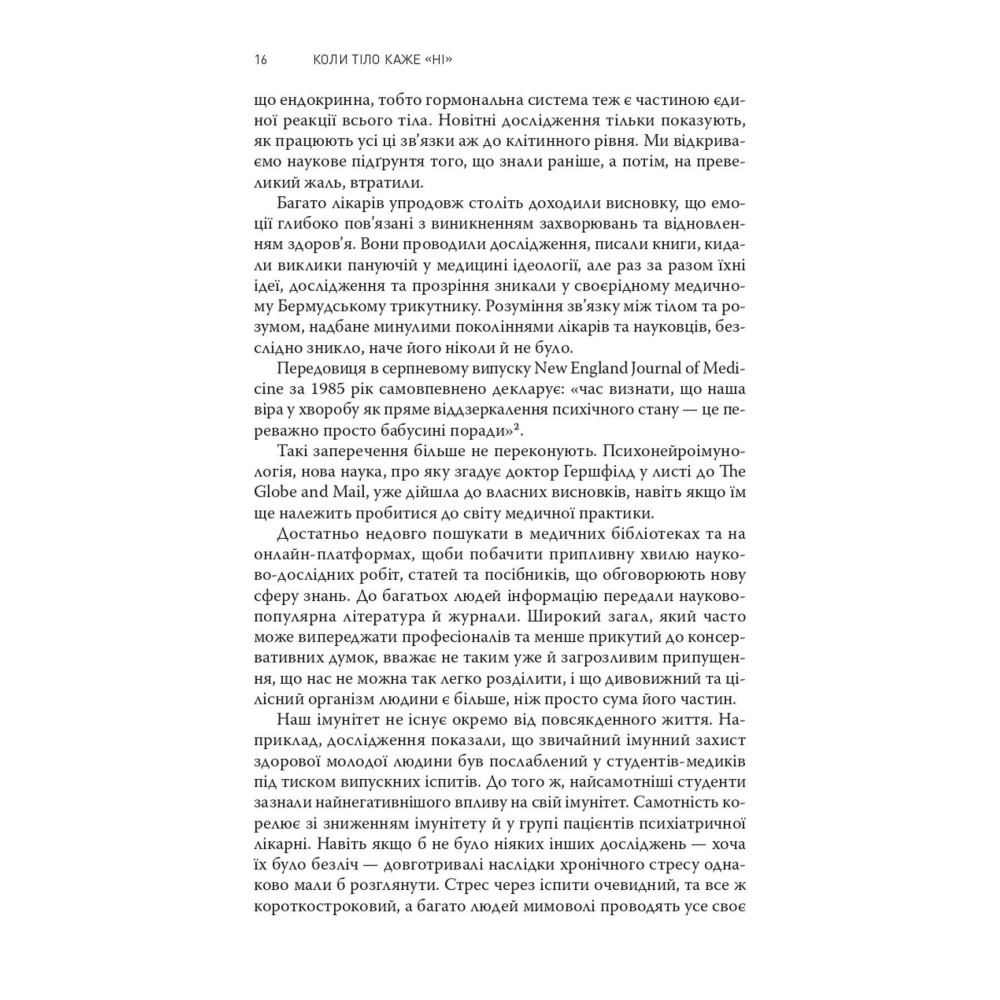 «Коли тіло каже „ні“. Ціна прихованого стресу» — глибока й прониклива праця відомого канадського лікаря та психолога Габора Мате, у якій він досліджує зв’язок між емоційним станом людини, прихованим стресом та розвитком серйозних хвороб.