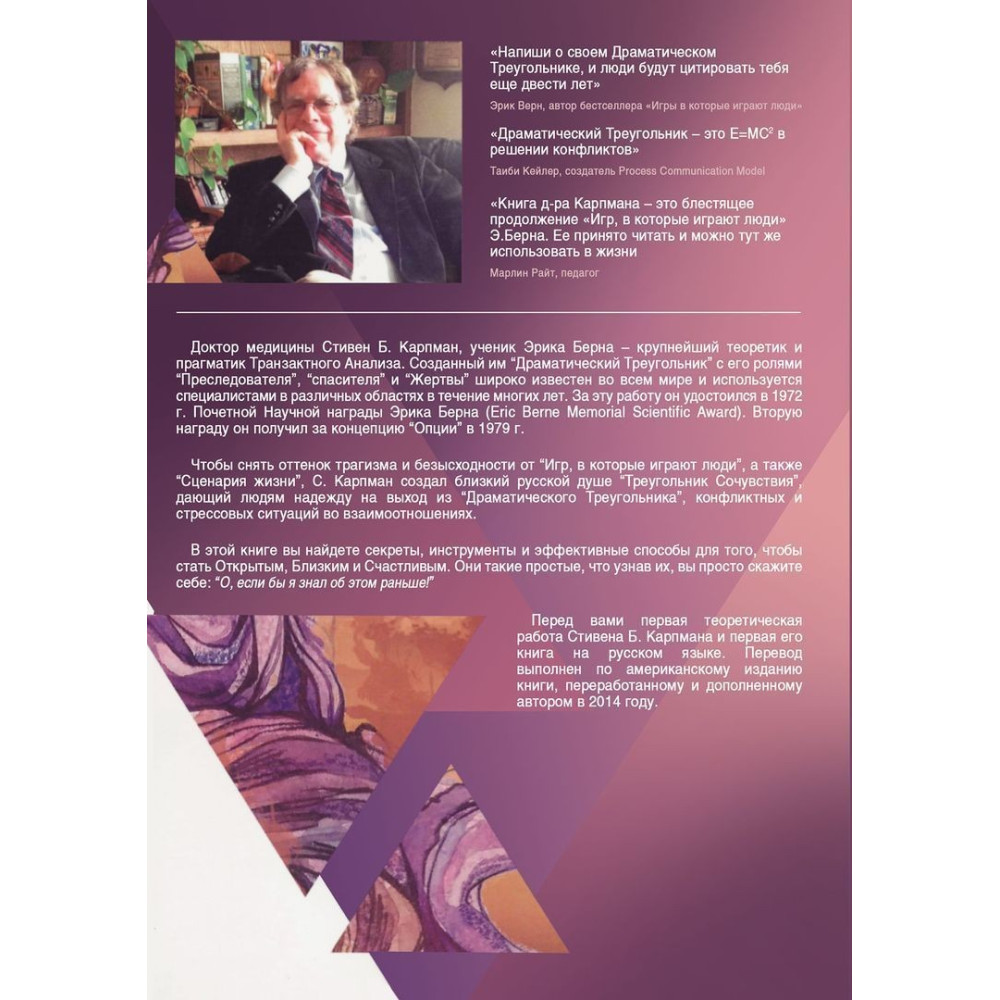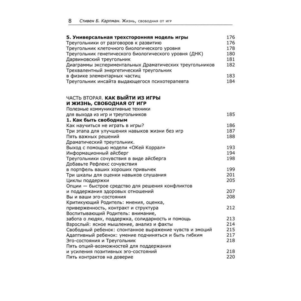Перед вами — перша теоретична робота Стівена Б. Карпмана і перша його книга російською мовою — «Жизнь, свободная от игр: Новый транзактный анализ интимности, открытости и счастья».