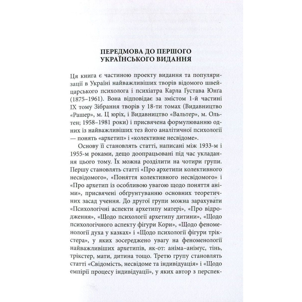 Книгу Карла Ґ. Юнґа «Архетипи і колективне несвідоме» становлять опубліковані протягом 1933-1955 років статті, у яких автор розвиває одні з найважливіших елементів його аналітичної теорії. Перед нами виклад учення про колективний рівень несвідомої частини нашої психіки і про архетипи як вроджені універсальні структури, що становлять зміст цього колективного несвідомого.