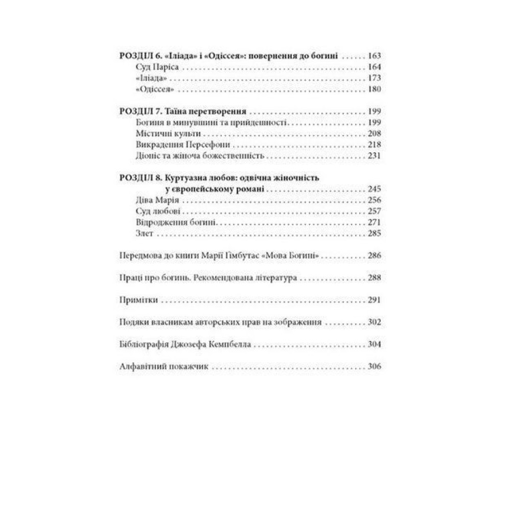 Книга «Богині. Таємниця жіночої божественності» відомого міфолога Джозефа Кемпбелла — це захоплива подорож у світ міфів і культури, де кожен образ жіночої божественності розкриває древні уявлення не лише про жінок, а й про саму природу людства. Кемпбелл пропонує нам поглянути на образи богинь через призму міфів з усіх куточків світу — від стародавніх неолітичних поселень до Ренесансу. І що найцікавіше — всі ці різні історії і релігії по суті зводяться до одного і того ж образу — Великої Богині, яка уособлює жіноче начало та суть світобудови.