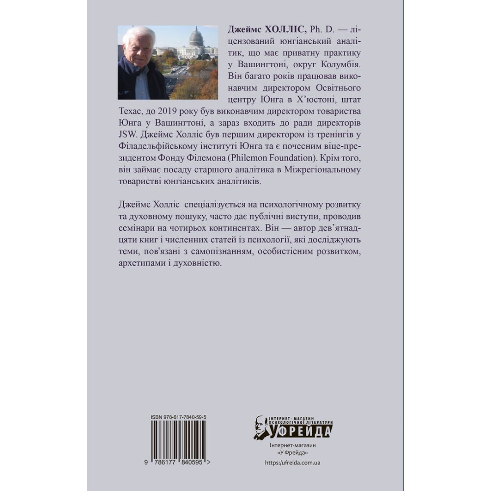 Джеймс Холліс — американський юнгіанський психоаналітик, письменник і оратор, який має приватну практику у Вашингтоні, округ Колумбія. Багато років працював виконавчим директором Освітнього центру Юнга в Х'юстоні, штат Техас, до 2019 року був виконавчим директором товариства Юнга у Вашингтоні, а наразі входить до ради директорів JSW. Холліс був першим директором із тренінгів у Філадельфійському інституті Юнга та є почесним віце-президентом Фонду Філемона (Philemon Foundation), який займається виключно творчістю Карла Юнга. Окрім того, є старшим аналітиком в Міжрегіональному товаристві юнгіанських аналітиків та спеціалізується на психологічному розвитку та духовному пошуку. Всі 19 книг Джеймса Холліса і його численні статті що досліджують теми самопізнання, особистісного розвитку, архетипів, духовності тощо.