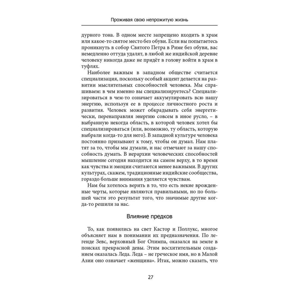 У книжці вони розповідають нам про те, як пригнічені, нереалізовані або нерозвинені потенційні можливості, не до кінця інтегровані нами, можуть призвести до величезних проблем у другій половині життя, коли ми раптом починаємо ненавидіти свого чоловіка чи дружину, роботу або навіть власне життя, що неминуче призводить до депресії. Але щойно ми починаємо усвідомлювати своє непрожите життя, це може стати тією рушійною силою, яка змушує нас рухатися вперед, незважаючи на всі наявні перепони, навіть якщо змінити зовнішні обставини нам не під силу. Стаючи старшими, виборів у нас стає все менше і менше. Тож легко впасти в зневіру через те, що так і не було реалізовано і заважає нам отримувати задоволення від життя зараз.