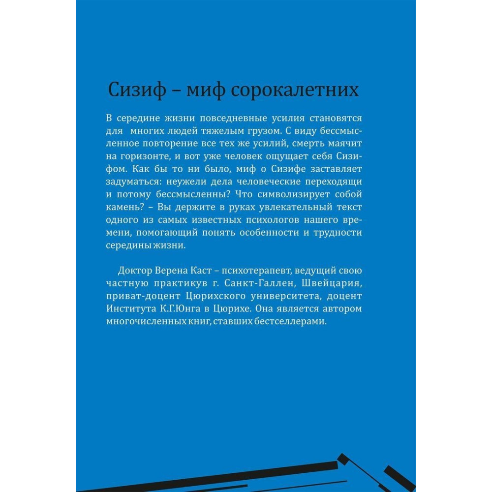 Книга від Верени Каст «Сизиф: удерживание и отпускание в середине жизни» присвячена усвідомленню надбань кожної людини у середині життєвого циклу.