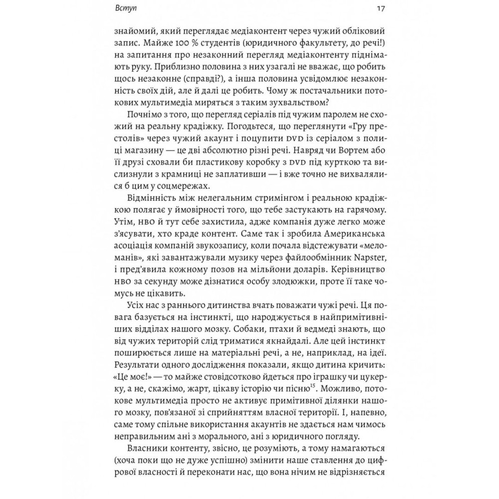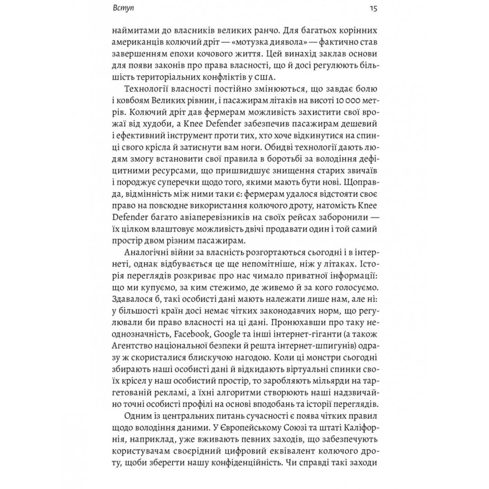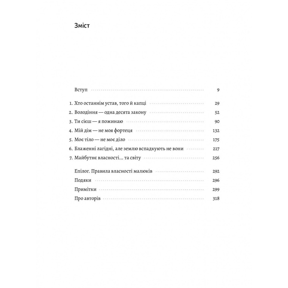 Слово «моє» ми засвоюємо ще в дитинстві. А коли виростаємо, ідея власності здається природною, незалежно від того, купуємо ми чашку кави чи будинок. Але кому належить простір за вашим сидінням у літаку — вам чи пасажиру позаду вас? Чому плагіат — це неправильно, а копіювати рецепт чи дизайн сукні — нормально? Кому належить земля під вашим будинком, а кому повітря над ним? Виявляється, із власністю все набагато складніше, ніж нам здавалося.