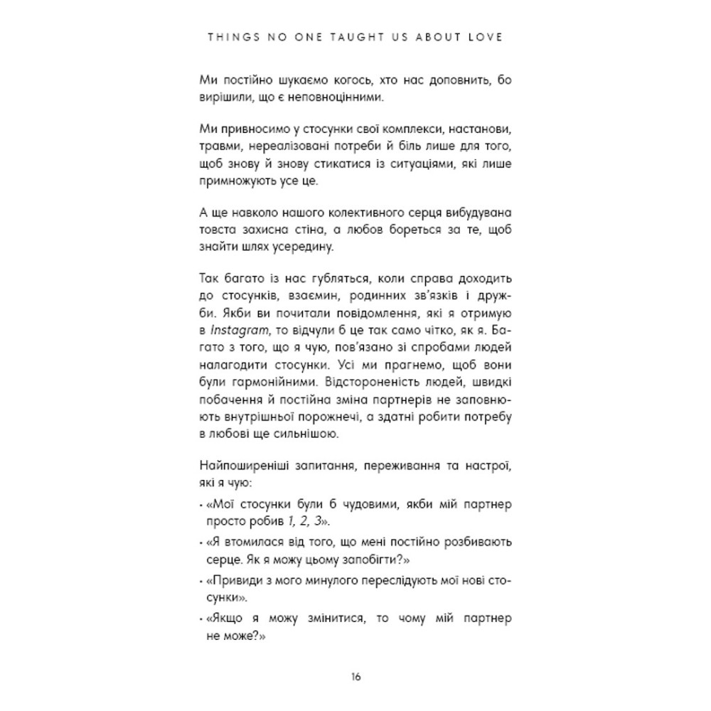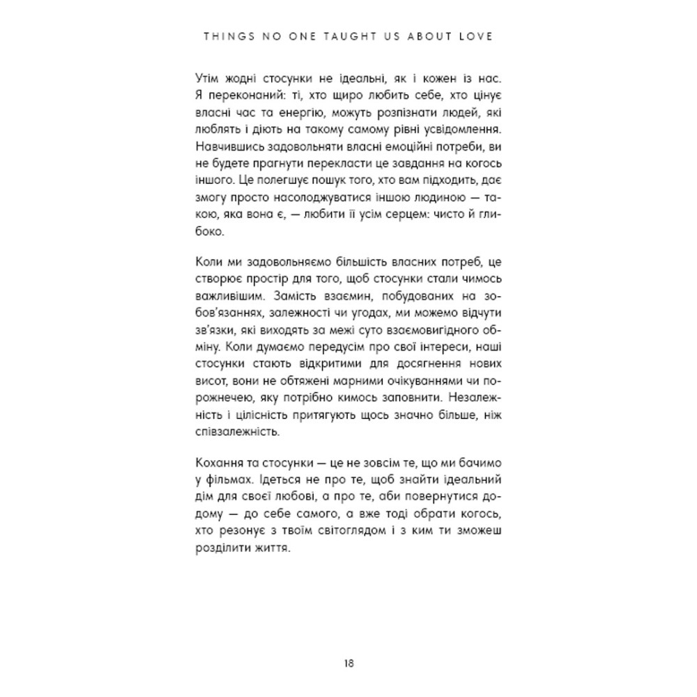 «Things No One Taught Us About Love» стане у пригоді як тим, хто шукає відповіді на питання про любов, так і тим, хто хоче відкрити для себе нові підходи до особистого щастя та гармонії у стосунках.