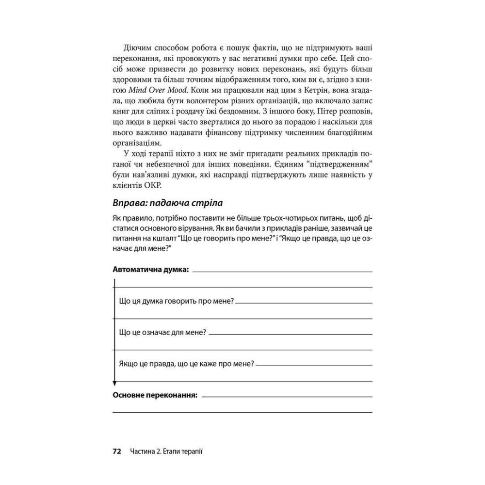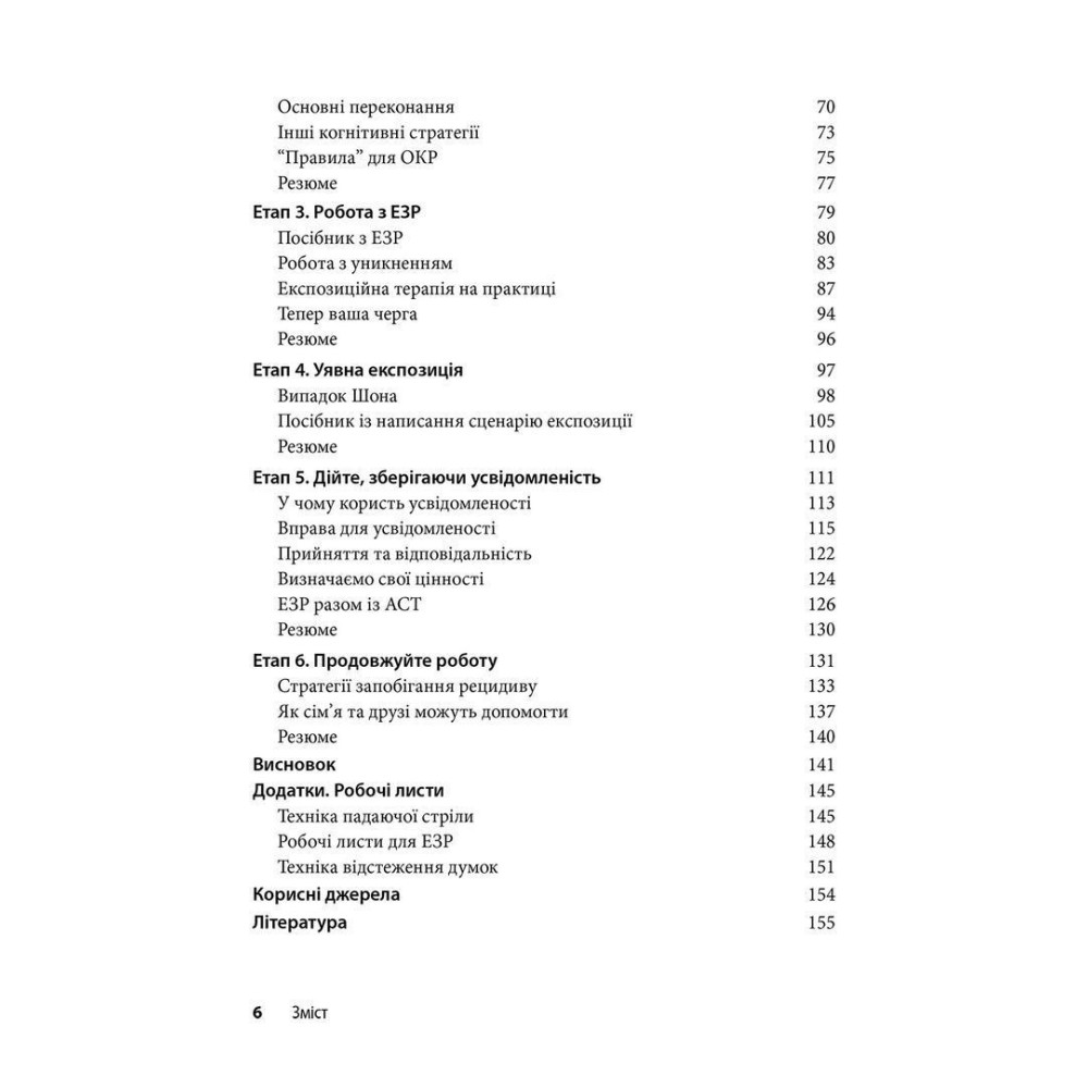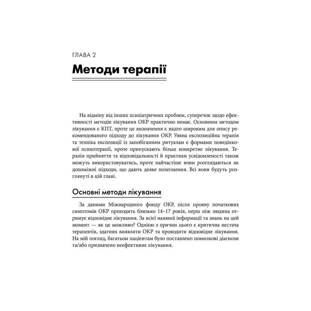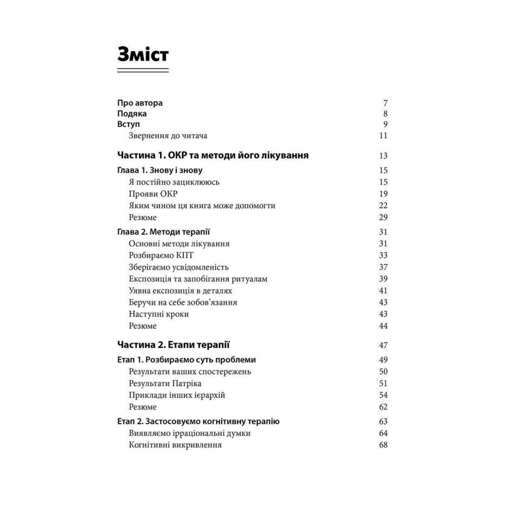 Вступ допоможе познайомитися з основними методами лікування, такими як КПТ, експозиційна терапія та практики усвідомленості. Вправи, опитувальники, контрольні списки та питання для роздумів представляють практичний та персоналізований підхід до лікування ОКР. А реальні історії та приклади пацієнтів, які особисто зіткнулися з ОКР, підтримають читача на шляху до лікування.