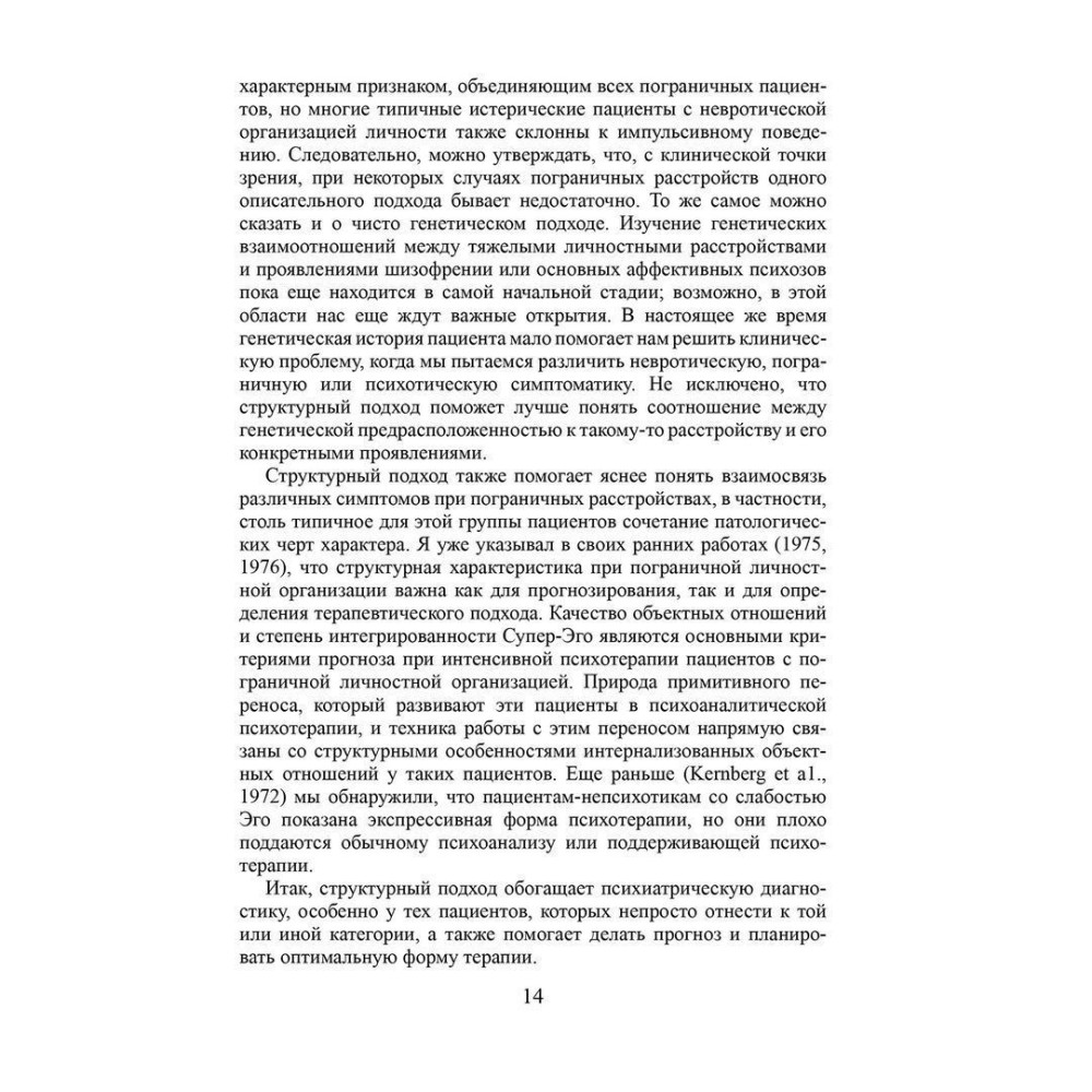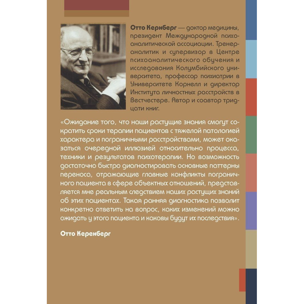 Як поставити діагноз у складних випадках, який тип психотерапії показаний клієнту, як справлятися з глухими та особливо складними ситуаціями в терапії, чи потрібна пацієнтові госпіталізація і як на нього впливає навколишня соціальна система — ось деякі з проблем, докладно, на рівні техніки, описаних у книзі президента Міжнародної психоаналітичної асоціації Отто Ф. Кернберга — «Тяжелые личностные расстройства. Стратегия психотерапии».
