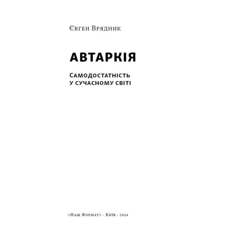 Книга «Автаркія. Самодостатність у сучасному світі» народжена на передовій: Євген Врядник у ній досліджує поняття автаркії (самодостатності) як засобу для збереження внутрішньої свободи в умовах сучасного світу. Тут поєдналися глибокі роздуми про індоєвропейську цивілізацію і досвід бойових дій.