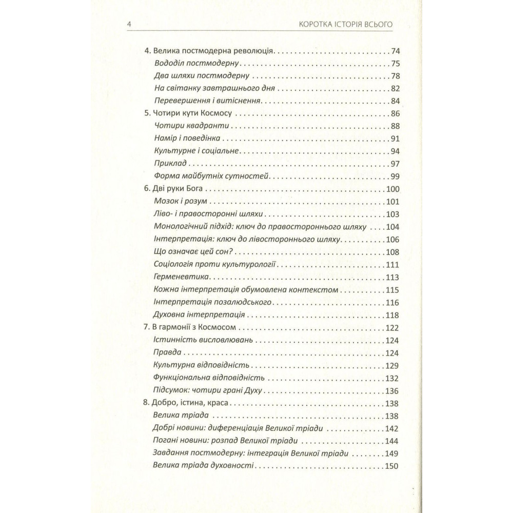 Хай легковажна назва книги Кена Вілбера не вводить читача в оману: під обкладинкою «Коротка історія всього» — серйозний філософський розмисел про суперечливі шляхи, якими розвивалося людство в психологічному, емоційному, інтелектуальному, моральному і духовному планах.