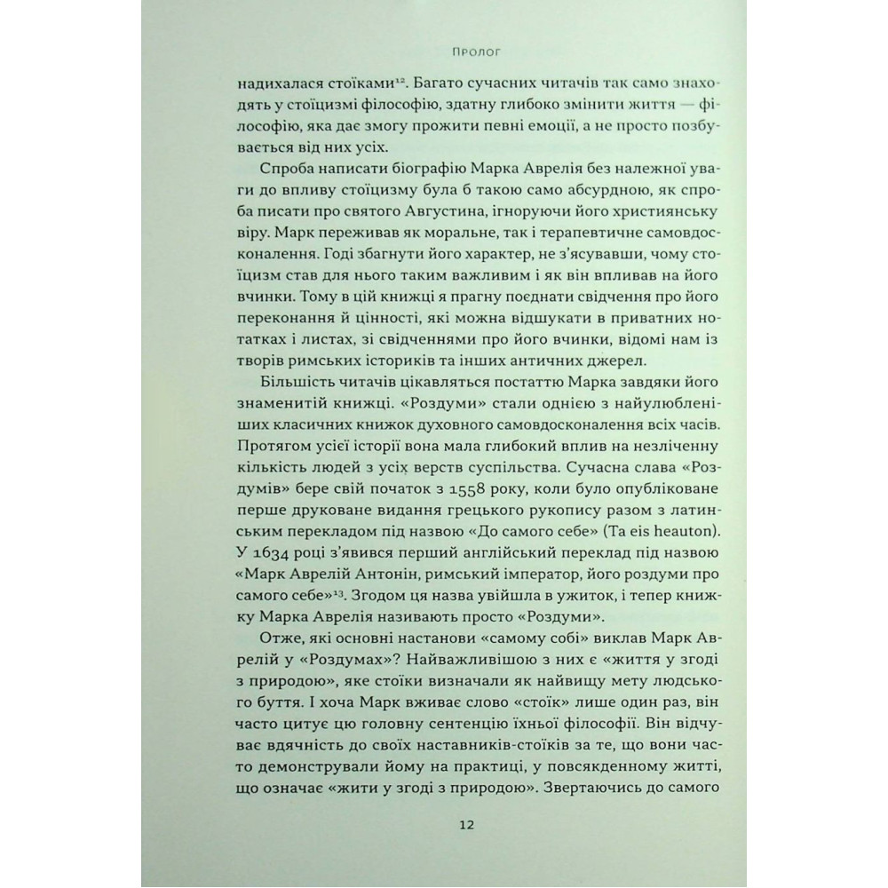 Видання «Марк Аврелій. Імператор-стоїк» від Дональда Робертсона оживляє Марка Аврелія (121–180 н. е.) для нового покоління читачів, досліджуючи захоплюючу психологічну подорож імператора. Дональд Робертсон досліджує стосунки Марка з ключовими фігурами його життя, такими як його мати Доміція Луцилла та імператор Адріан, а також з його наставниками-стоїками. Він спирається на «Роздуми та листування Марка Аврелія», досліджує дії імператора, детально описані в «Історії Августів» та інших стародавніх текстах.