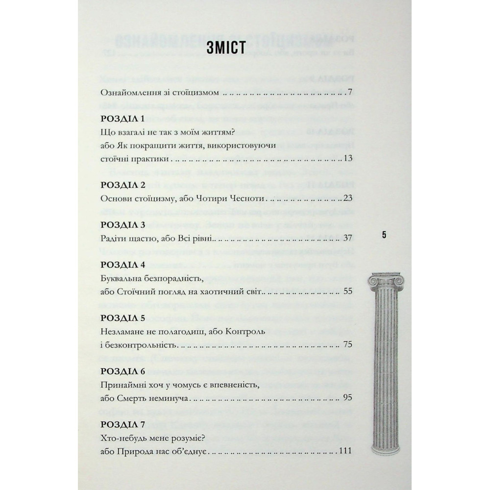 Мулліґен адаптовує ідеї Марка Аврелія, Сенеки та Епіктета до сучасних реалій, показуючи, як управляти емоціями, реагувати на непередбачувані події та зберігати стійкість у складні моменти.