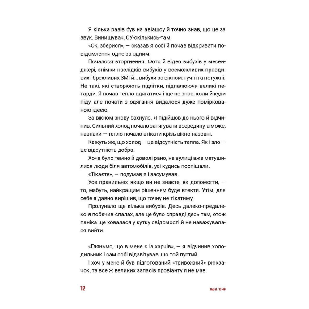 «24.02. Щоденник війни» від Андрія Мероника — це по суті нотатник, який розповідає невигадану історію про компанію молодих людей, котрі опинилися посеред війни без власного на те бажання. Про те, як кожного з них «морозило» чи то від страху, чи то від холоду, коли десь поруч влучала ракета й лунав потужний вибух, який вибивав шибки та вмикав сигналізації. Як кожен із них намагався бути корисним країні, як розвивалися їхні страхи та сумніви. Про що говорили, про що думали й у що вірили. Ця книжка про таких самих людей, як і ви. Книжка про наших із вами сучасників — українців. Автор написав цю книгу, щоб не забувати, наскільки страшним був той день — двадцять четвертого лютого.