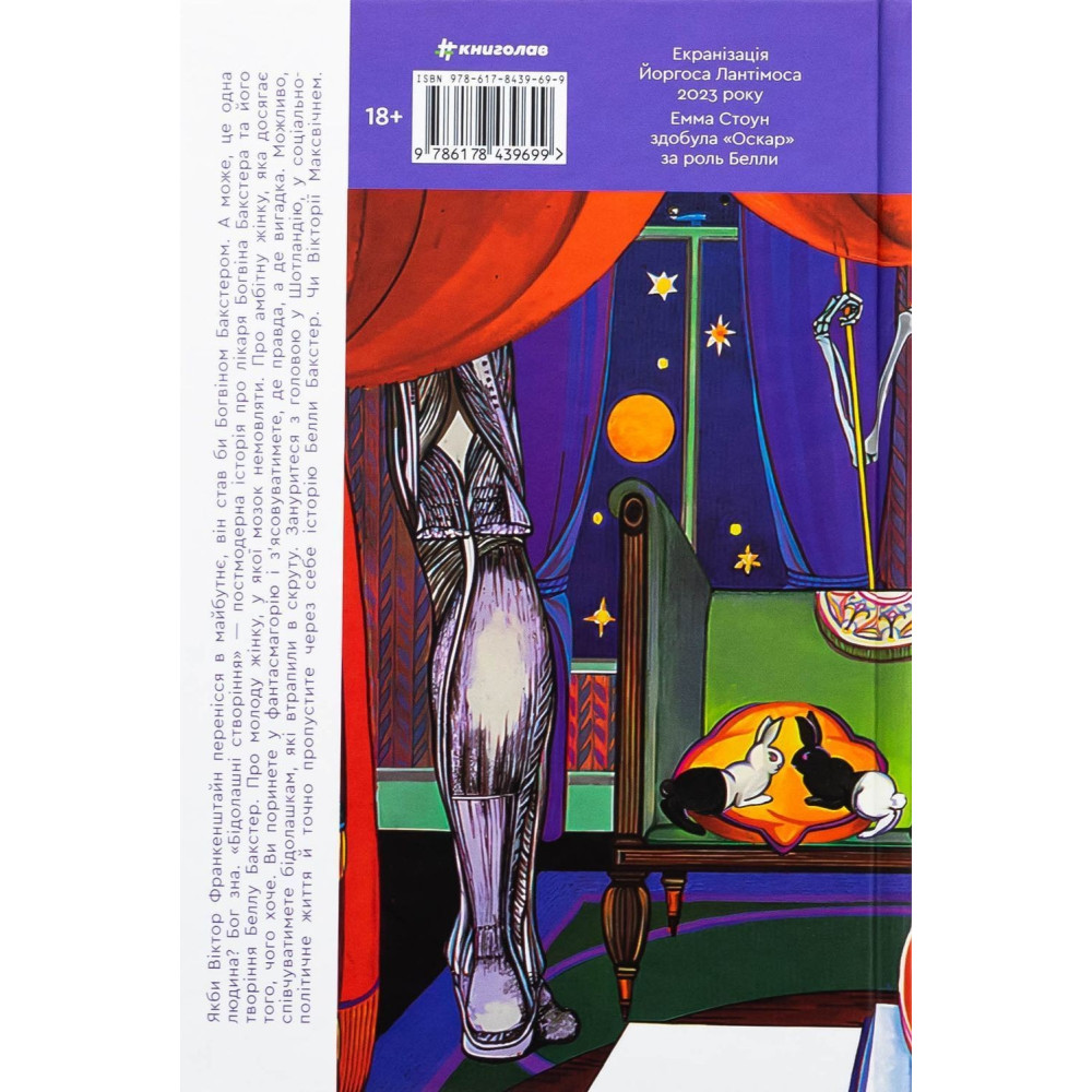 Але «Бідолашні створіння» — постмодерна історія про лікаря Богвіна Бакстера та його творіння — Беллу Бакстер. Про молоду жінку, у якої мозок немовляти. Про амбітну жінку, яка досягає того, чого хоче. Ви поринете у фантасмагорію і зʼясовуватимете, де правда, а де вигадка. Можливо, співчуватимете бідолашкам, які втрапили в скруту. Кататиметеся на гойдалках, які для вас підготував автор, Арчибальд Максвічнем, доктор медицини.