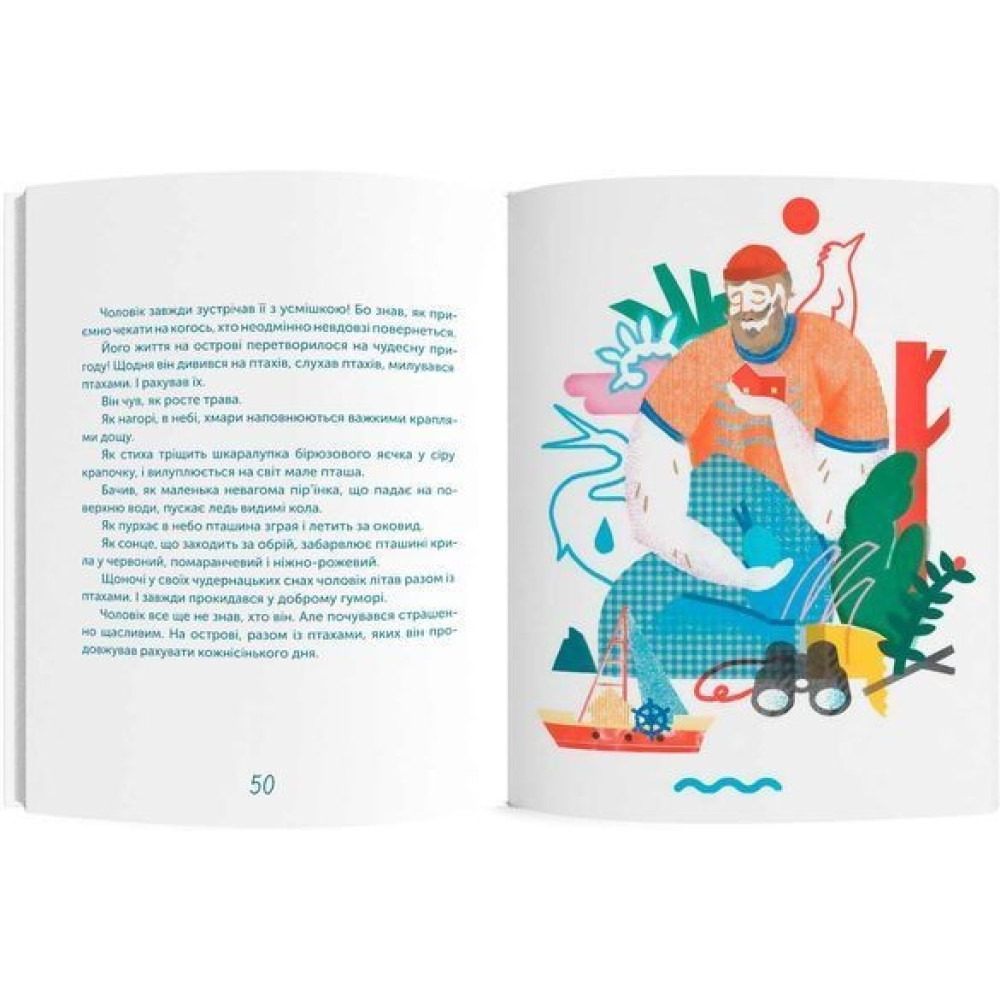 Барвиста, якісна, великого розміру книга — чудовий подарунок для дитини. Це не та книга, яку захочеться продати чи подарувати, один раз прочитавши. Історію чоловіка, який рахував птахів хочеться мати на книжковій полиці й час від часу перечитувати — в різних настроях і емоційних станах.