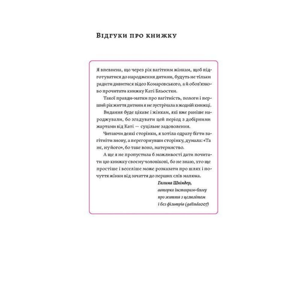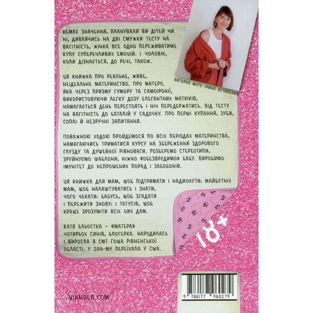 «Матера вам не наймичка, або Чому діти — це прекрасно...» за авторством Каті Бльостки — книжка про реальне, живе, неідеальне материнство. Про матеру, яка через призму гумору та самоіронії, використовуючи легку дозу елегантних матюків, намагається день перестоять і ніч передержатись. Від тесту на вагітність до баталій у садочку. Про перші купання, зуби, соплі й незручні запитання.