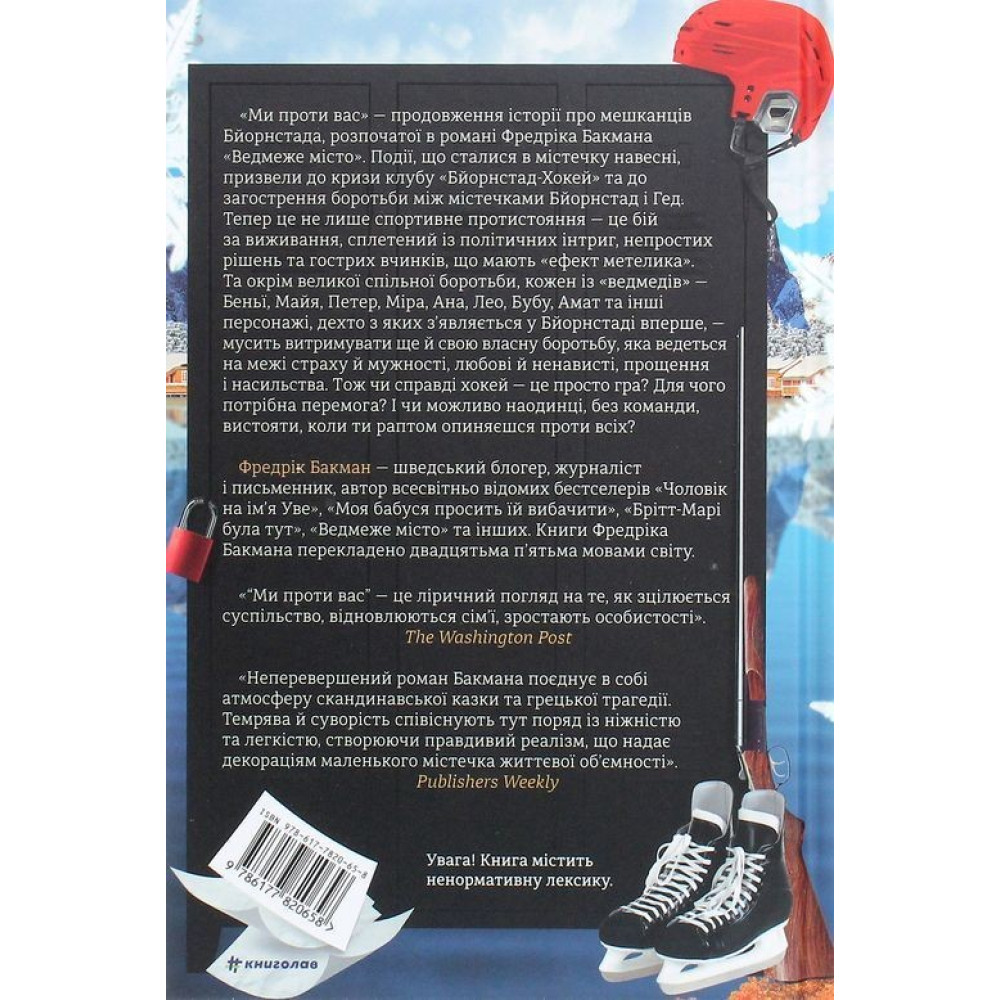 «Ми проти вас» — продовження бестселера «Ведмеже місто» від всесвітньо відомого шведського письменника Фредріка Бакмана. На основі цієї історії компанія HBO зняла однойменний серіал, прем’єра якого відбуласьу жовтні 2020-го року.