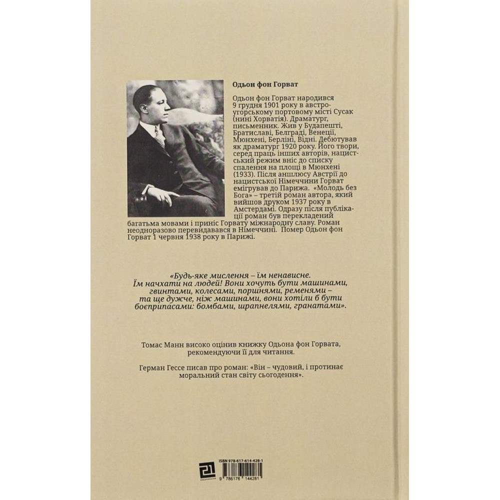 Роман «Молодь без Бога» Одьона фон Горвата – це жахаюча історія про підлітків — підростаючу передвоєнну пронацистську німецьку молодь — для якої поняття справедливості, чесності, правди абсолютно викривлені й цілком спотворені. Ці молоді люди засліплені «нацистськими ідеями» й не усвідомлюють, що несуть загрозу навколишнім і цілому людству. Їхні батьки в цьому їх підтримують — вони легко дають опанувати себе, свій світ та свої думки нацистській диктатурі і її пропагандистським формулюванням.