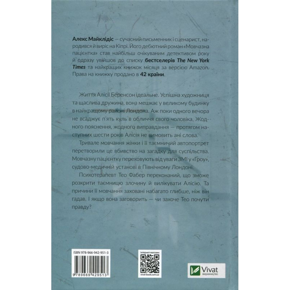 «Мовчазна пацієнтка» від Алекса Майклідіса розповідає про Алісію Беренсон, життя якої виглядає ледь не ідеальним: вона відома художниця, а її чоловік — не менш відомий фотограф, і проживають вони в будинку, що розташований в розкішному районі Лондона... Та одного вечора відбувається страшна подія, яка викликає питання: вона п'ять разів вистрілює в обличчя свого чоловіка й після цього не каже ні слова.