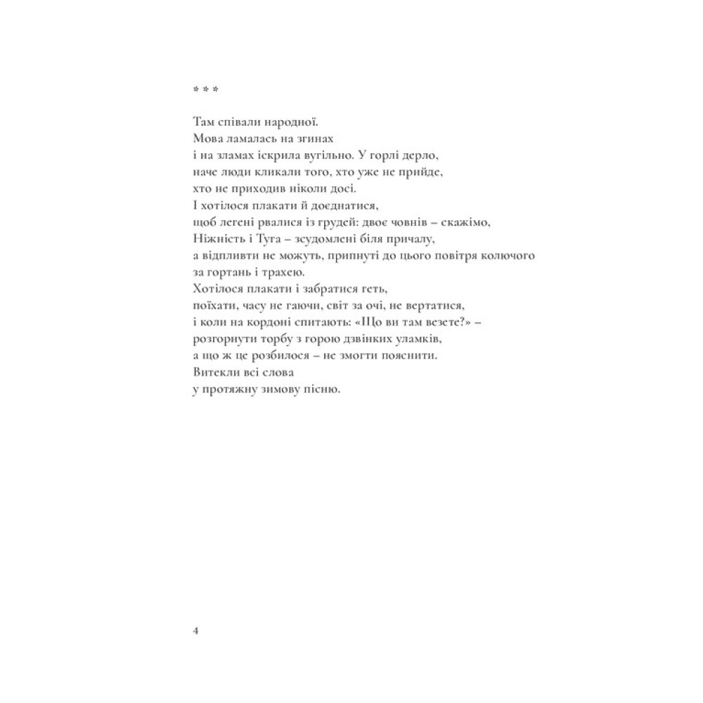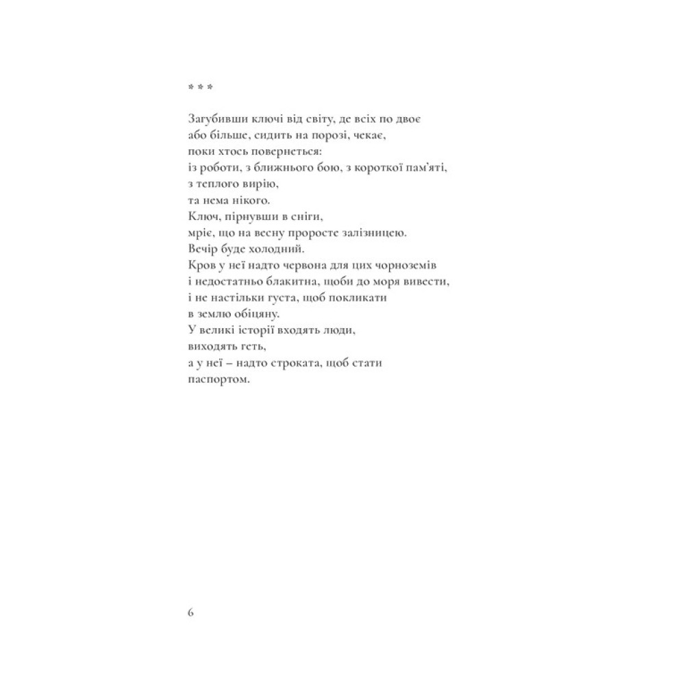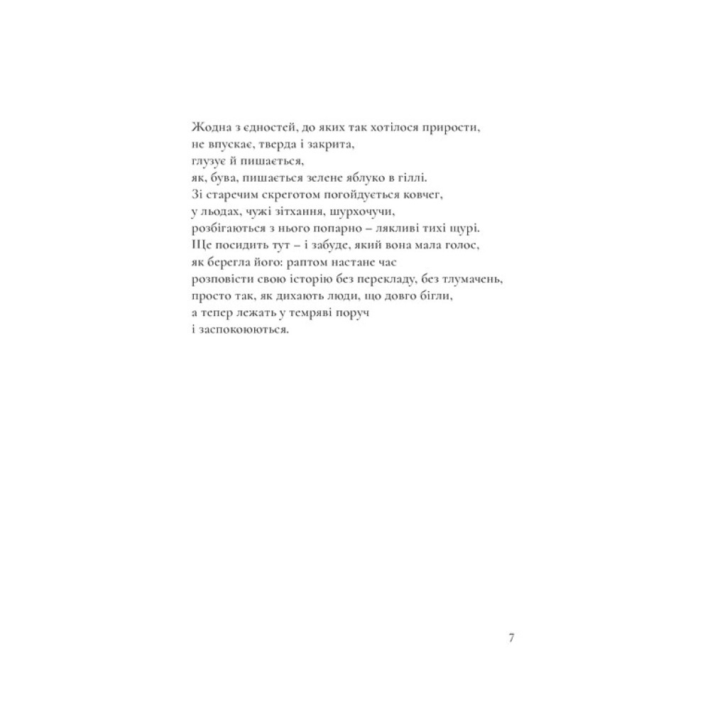 «Ніхто нас тут не знає, і ми — нікого» від Катерини Калитко та з ілюстраціями Юрія Іздрика — дуже суцільна річ: це верліброва історія, розказана на одному довгому подиху про кордони свого, які неодмінно впізнаєш і будеш готовий захищати, а вони захистять тебе самим цим упізнаванням. Нарешті, про уміння жити з власними шрамами, про сирітство серед рідних і про металевий запах зброї вночі. Нарешті, про повітря, в якому розчинений час, та про смак мови, яка опікає язика й піднебіння, коли різко ковтаєш її, справжню.