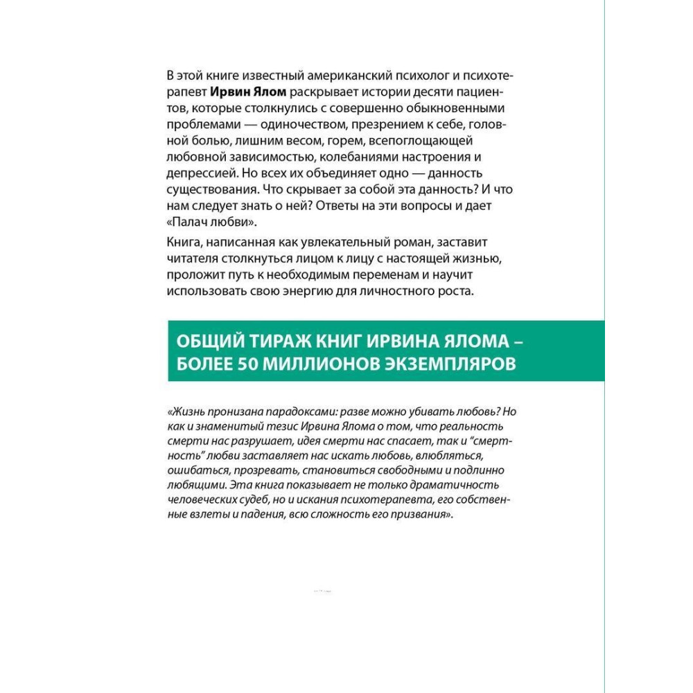 Ірвін Ялом — жива легенда психоаналізу, засновник школи екзистенціальної психології, доктор медичних наук і професор Стенфордського університету, за чиїми підручниками навчаються тисячі майбутніх лікарів у всьому світі. Доктор Ялом створив новий жанр навчальної оповіді, у якій зі щирістю і дотепністю розповідає про випадки зі своєї психіатричної практики.