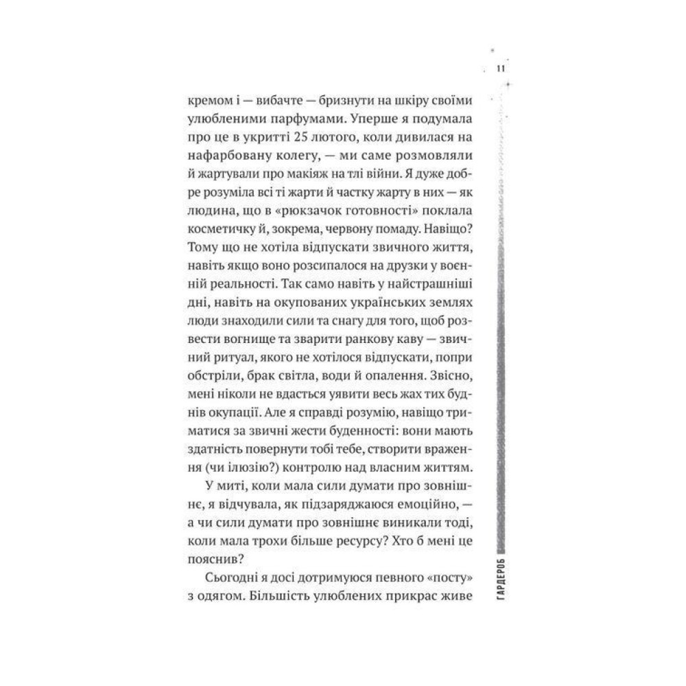 У цій книзі авторка з позиції власного досвіду описує реалії міста часів війни. І те, як «мирні» чи «тилові» регіони мусять адаптуватися до воєнних реалій. Йдеться про зміну пріоритетів, відносну безпеку, історичну пам’ять, відчуття дому, міста й людей, які пов’язані між собою. Про те, як війна вкрала в нас спокій, друзів, оселі, але несподівано й позбавила всього зайвого — речей, сподівань, страхів. Ми стали відвертішими, різкішими й водночас значно сильнішими.